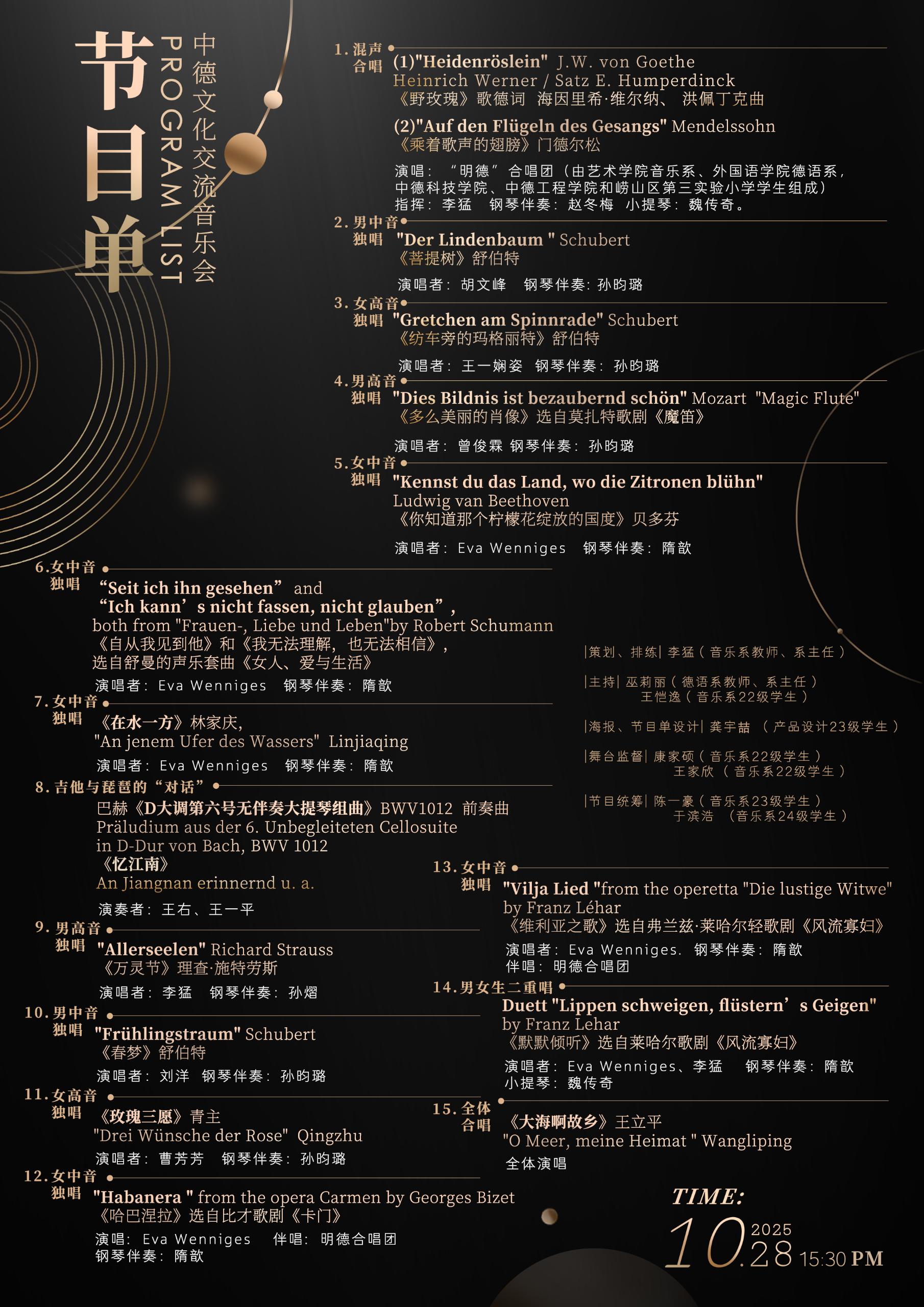 时间:10月27日(周一)14:30艾娃·文庭女士(Eva Wenniges)声乐艺术大师班