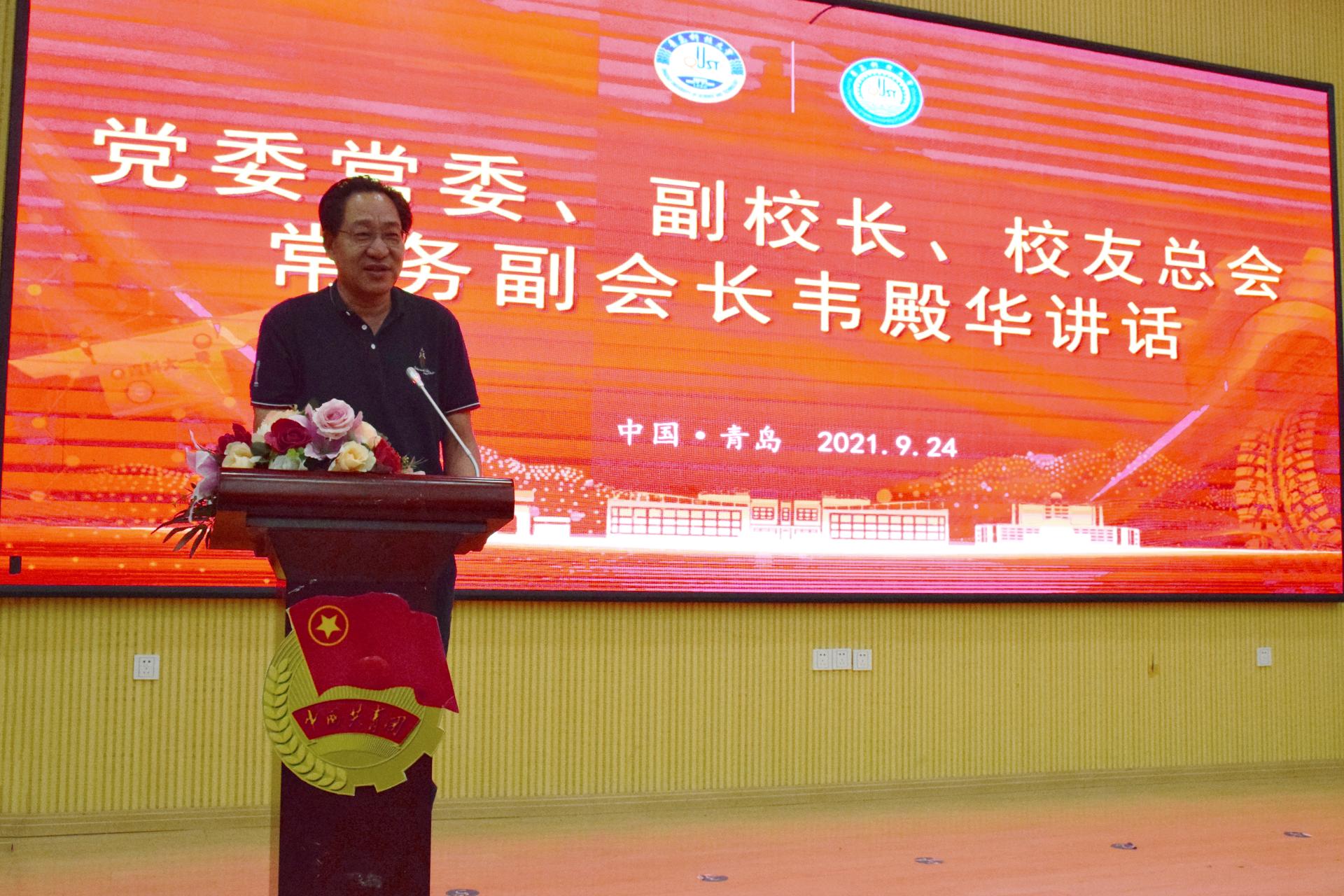 韦殿华代表学校为傅秀成颁发捐赠证书。他在讲话中指出,校庆是凝心聚力、统一认识的重要契机,是沉淀历史底蕴、思考未来发展的重要时机,也是开展爱校荣校教育、提升学校美誉度的重要平台。2020年在全体青科大人共同努力下,学校70周年校庆取得圆满成功,近一年来在特色学科、人才培养、国家平台、科技创新等方面取得突出成绩。希望通过校庆日系列庆祝活动,打造特色校园文化品牌,激发广大师生员工和校友爱校、荣校、兴校的热情,按照学校“一年全面起势、三年取得突破、五年塑成优势”的战略部署,为建成服务国家战略、服务区域发展,引领行业进步特色鲜明的高水平大学而努力奋斗!