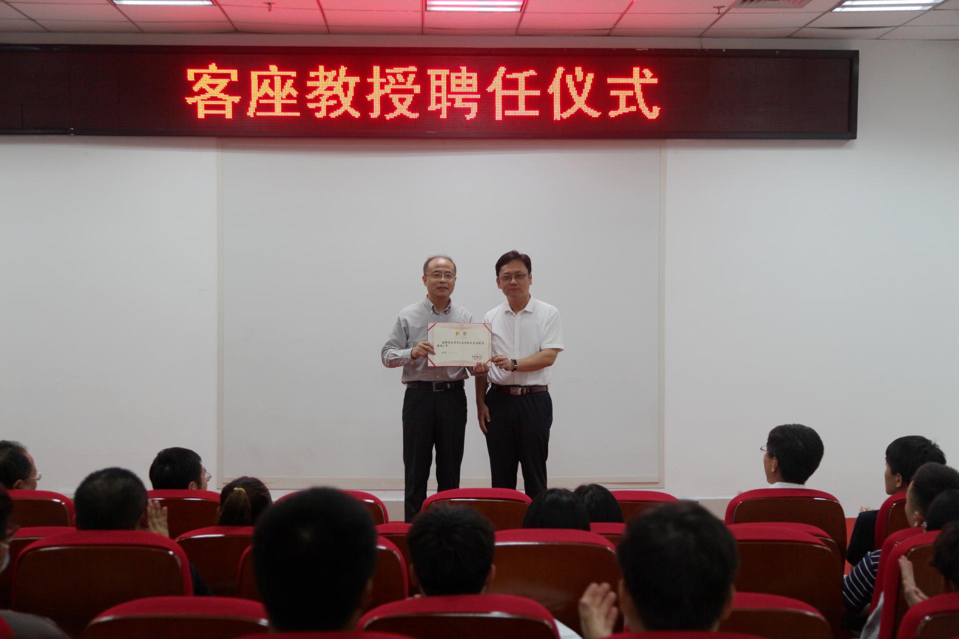 仪式上,张洪坤为孙厚军颁发学校客座教授聘书。
