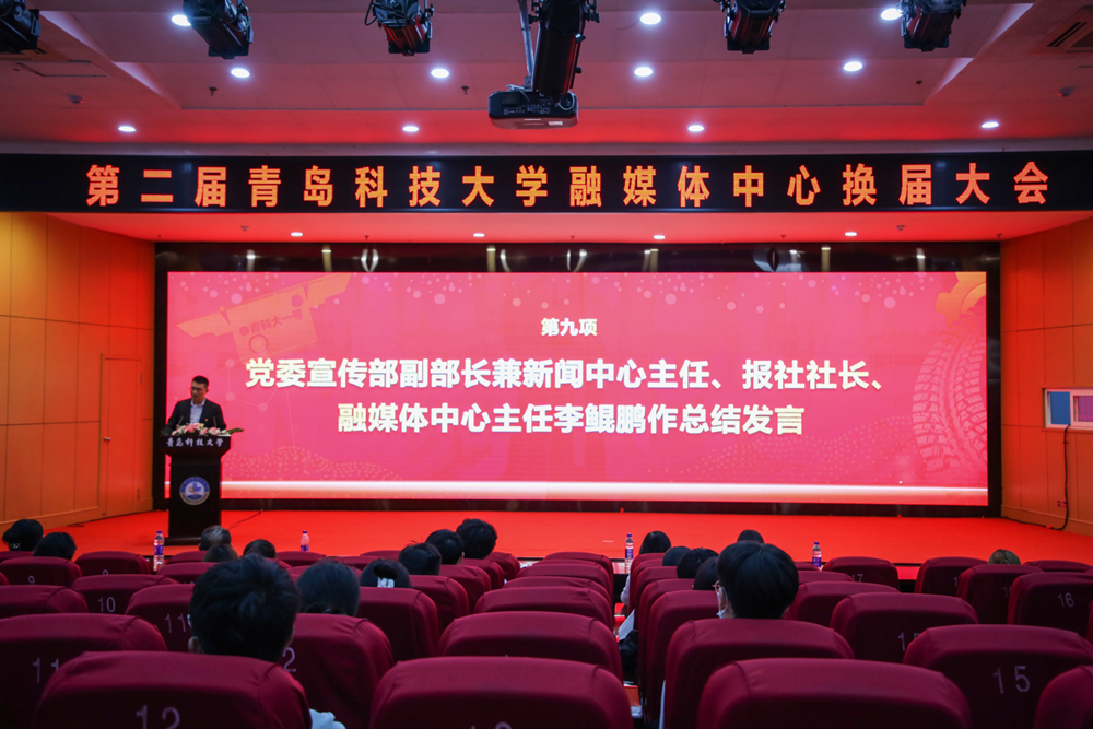 10月12日下午,学校融媒体中心换届大会在崂山校区第三报告厅举行。党委宣传部副部长兼新闻中心主任、报社社长李鲲鹏出席大会并作总结发言。融媒体中心指导教师代表、学生骨干代表等参加了会议。