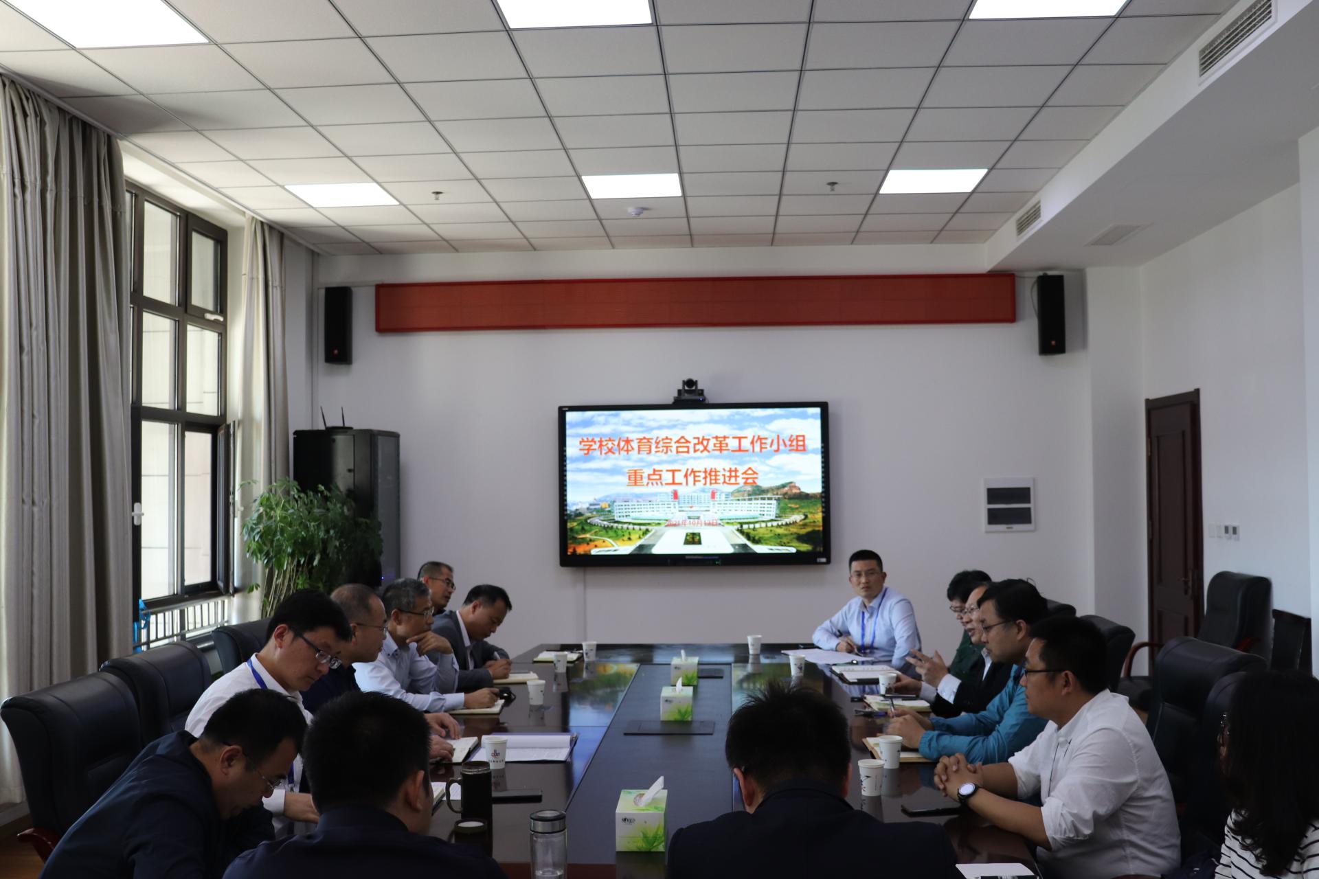 10月13日下午,学校体育综合改革工作小组重点工作推进会在崂山校区综合服务楼2015会议室举行,党委常委、副校长丁林出席会议。学校体育综改领导小组办公室主任毛常明主持会议。