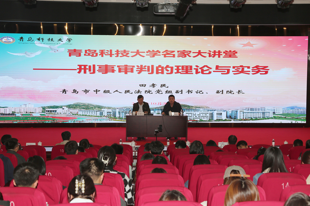 10月20日下午,青岛市中级人民法院党组副书记、副院长田孝民做客学校名家大讲堂,在崂山校区“英科”报告厅作题为《刑事审判的理论与实务》的报告会。学校党委副书记张鸿波出席并主持报告会。