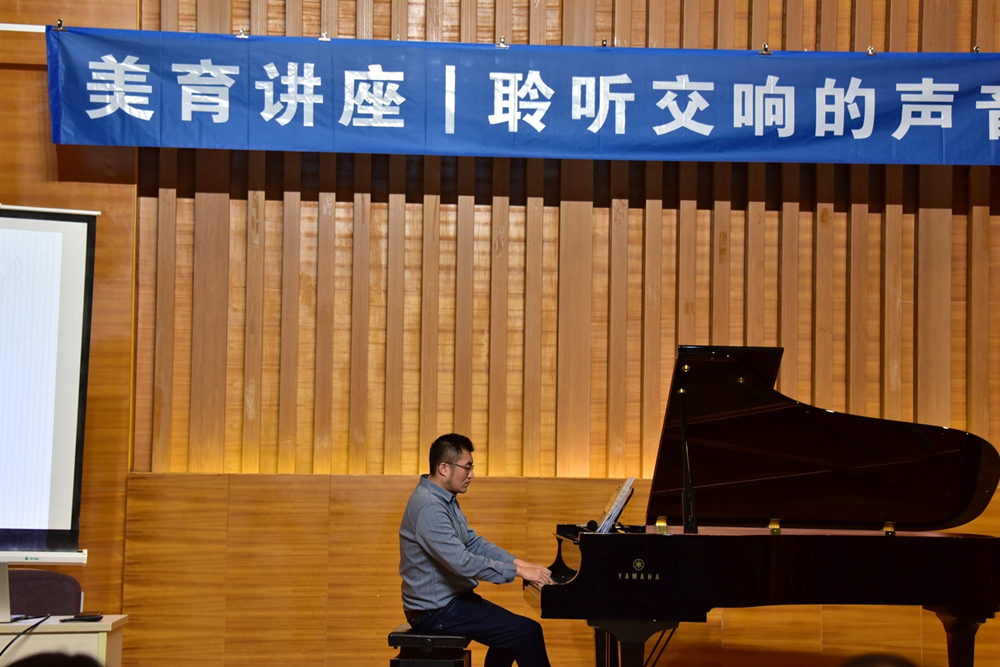 主讲嘉宾、艺术学院教师孙熠介绍了交响音乐的内涵与体裁分类、交响音乐的历史发展阶段与代表性作曲家、交响乐队的建制与乐器组别、交响音乐会的节目单设计与公众欣赏礼仪、重要的古典音乐节庆、交响音乐的结构方式与表现手段、标题性的交响音乐与纯音乐性的交响音乐、电影中的交响音乐选段等内容,重点讲解了贝多芬的《第五交响曲“命运”》《第九交响曲“合唱”》,比才的歌剧《卡门》序曲,里姆斯基·科萨科夫的交响组曲《舍赫拉查德》,理查·施特劳斯的交响诗《查拉图斯特拉如是说》,德彪西的管弦乐作品《牧神午后》,李斯特的交响诗《前奏曲》等经典交响音乐名曲,并引用德国著名哲学家叔本华的名句“世界在音乐中得到了完整的再现和表达。它是各种艺术当中第一位的”作为结语,引导师生学会比较、欣赏、领悟更为优秀的文艺作品,进而提升自身的艺术修养和品鉴能力。