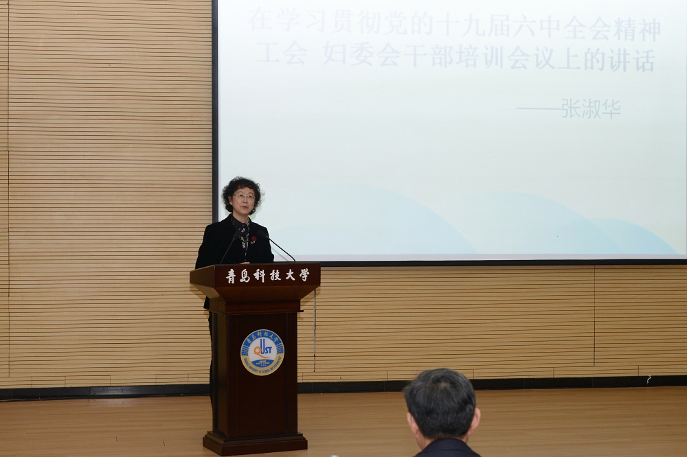 12月9日下午,学习贯彻党的十九届六中全会精神工会(妇委会)干部培训会在崂山校区第一报告厅举行,党委副书记张淑华出席会议并讲话,全体院级工会主席、妇委会主任参加会议。会议由工会主席郭曰铎主持。