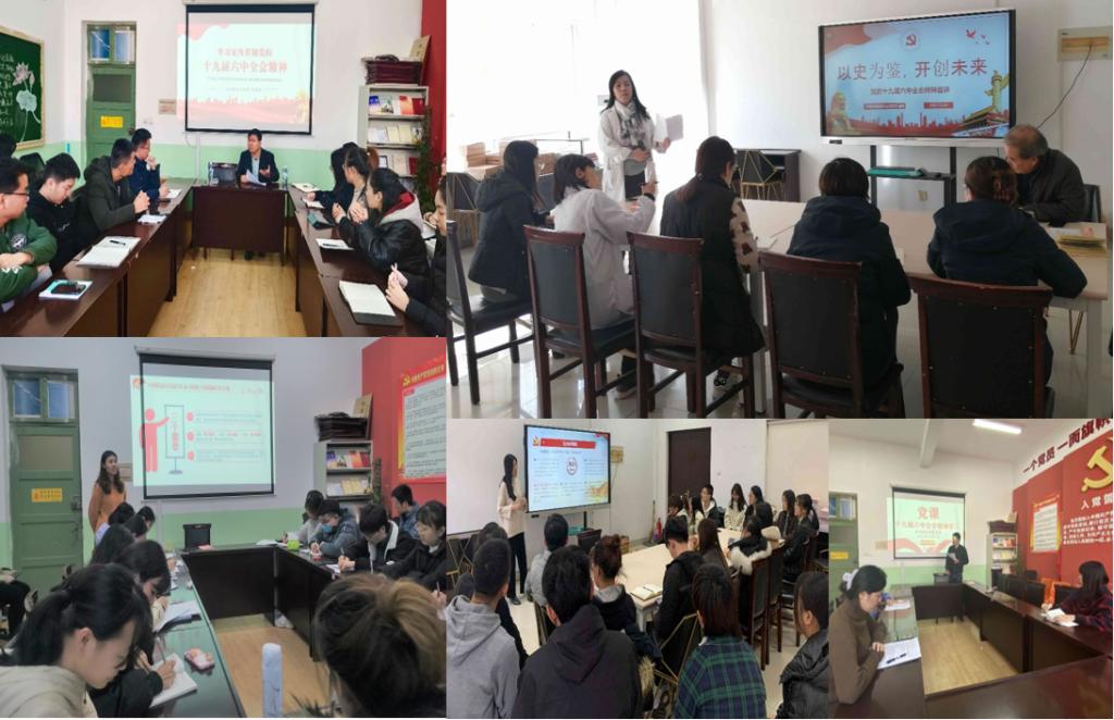 党课宣讲紧密结合,学院师生全体覆盖。学院各支部以支部书记上党课的形式进行党的十九届六中全会精神宣讲。保证学院全体党员在上党课的同时了解全会思想,加强学习的深度与广度,引导学生关注全会重点热点,深刻把握全会精神实质,让党的十九届六中全会精神走进每位党员,各师生党员结合自己的学习生活谈分享、写感悟,立大德、担重任。