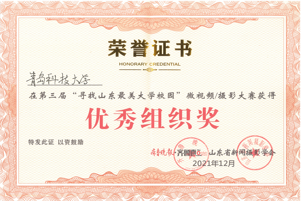 日前,由齐鲁晚报·齐鲁壹点和山东省新闻摄影学会共同主办的2021山东高校融媒传播交流会暨第三届“寻找山东最美大学校园”微视频/摄影大赛颁奖典礼在山东新闻大厦举行。学校选送的微视频参赛作品《最可爱的人》获微视频类最佳创意奖,学校获“优秀组织奖”“2021融媒传播·传播力十强”“2021融媒传播·创意传播高校”和“2021融媒传播·行业引领高校”等多项荣誉称号。