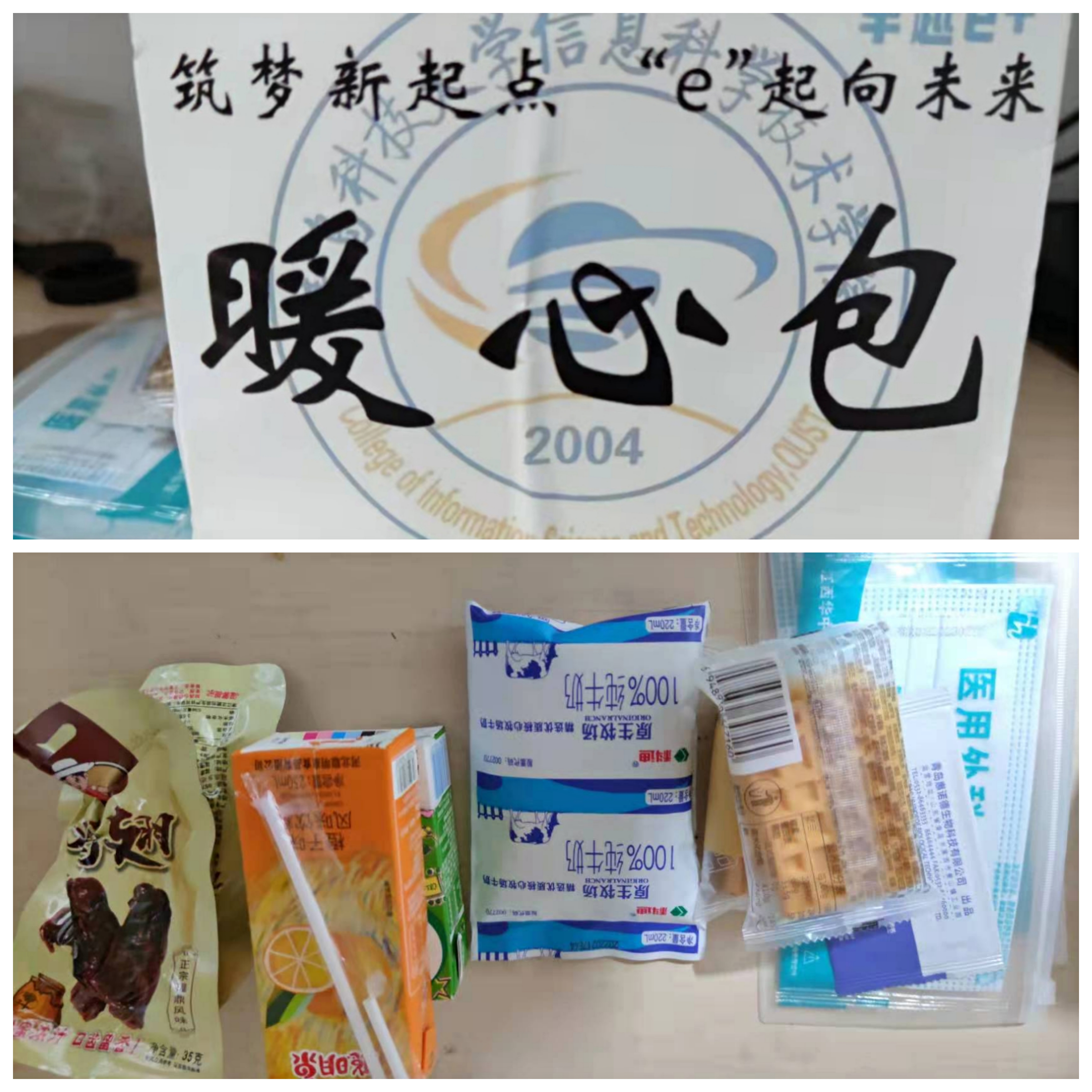 防控疫情不松懈,暖心包里存温情。学院为返校学生精心准备防疫暖心包,包含口罩、酒精湿巾,小零食等物品,提醒同学们疫情防控不放松,做好个人防护,提高防护意识,确保个人身心健康。