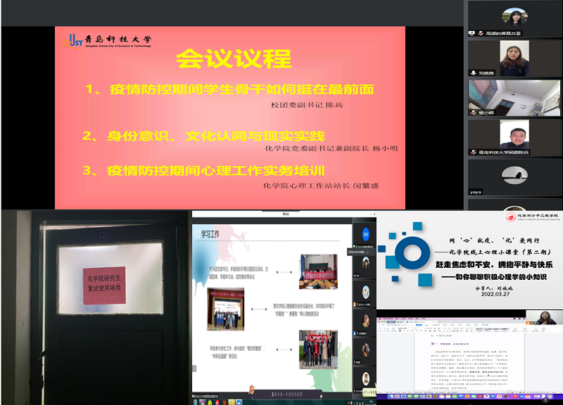 本轮疫情发生以来,化学院始终坚持认真回应学生关切,高效解决学生实际困难。先后召开学团骨干线上交流会、学生骨干志愿者培训会、心理知识线上宣讲会、“温暖研‘途’,助力上岸”考研复试培训会、“四困生”帮扶工作、毕业生就业督促等重点工作,统筹推进疫情防控和校园日常学生工作有序开展。