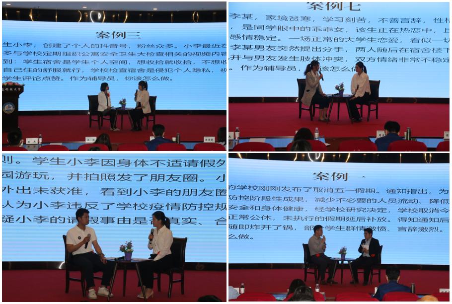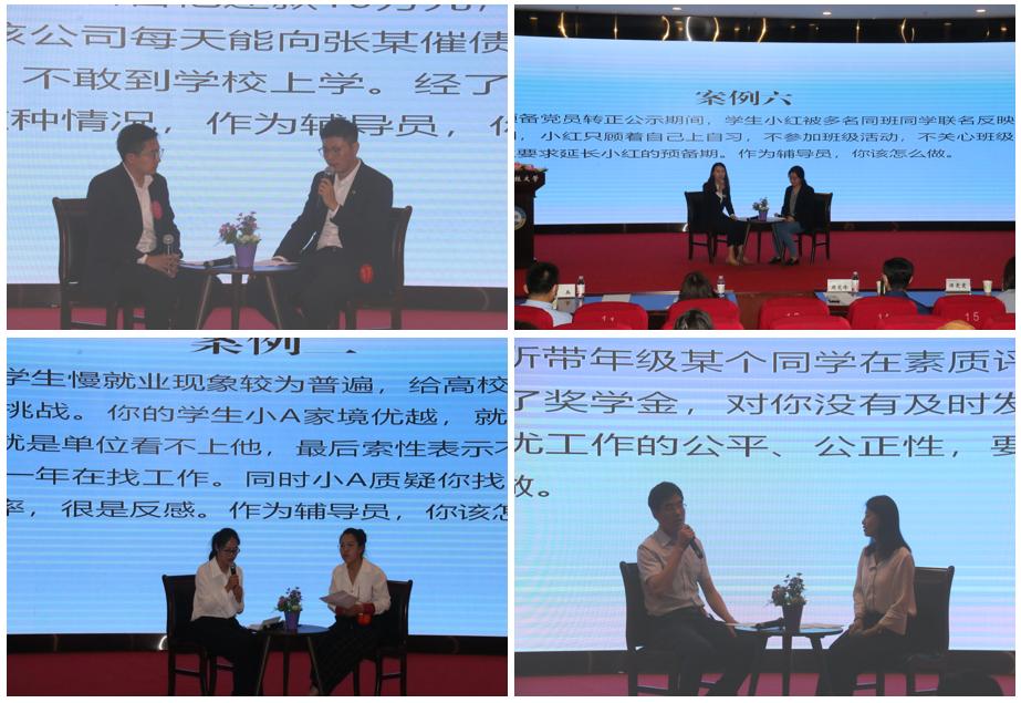 本轮复赛包括学情熟知和案例研讨两个环节。学情熟知环节主要考察辅导员对所带学生情况的熟悉程度,选手们随机抽学生姓名,对学生的基本信息进行陈述,精准分析、精确作答,展现了扎实的学生工作基本功。案例研讨环节重点考察辅导员综合运用理论分析问题、研判问题、解决问题的能力,选手们紧扣学生工作实际,抽丝剥茧,深入浅出,互相提问并作答,过程中认真思考、快速反应,现场气氛紧张活跃。