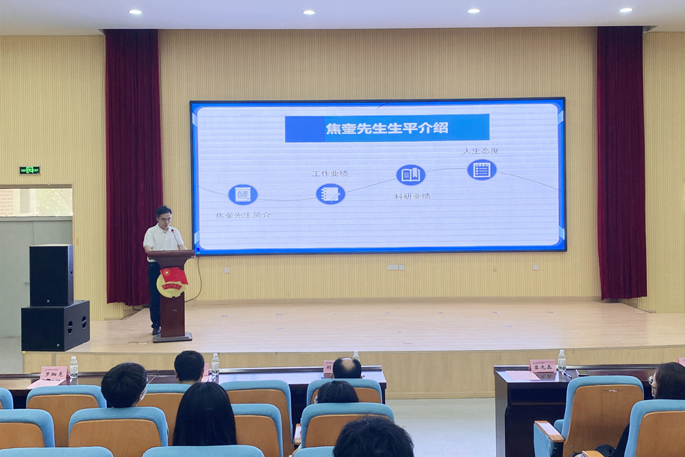 崔光磊作“我的导师是焦奎”主题报告,他从焦奎老师简介、工作业绩、科研成果、人生态度等四个方面进行交流分享,深情回顾了焦奎老师的崇尚科学、追求真理的科研生涯,分享了焦奎老师热爱劳动、与人为善的高尚品格。希望广大学弟学妹树立远大理想,永葆奋斗激情,实现人生价值,展现青年担当,做一个“勤学修德明辨笃实”的青科化院人。