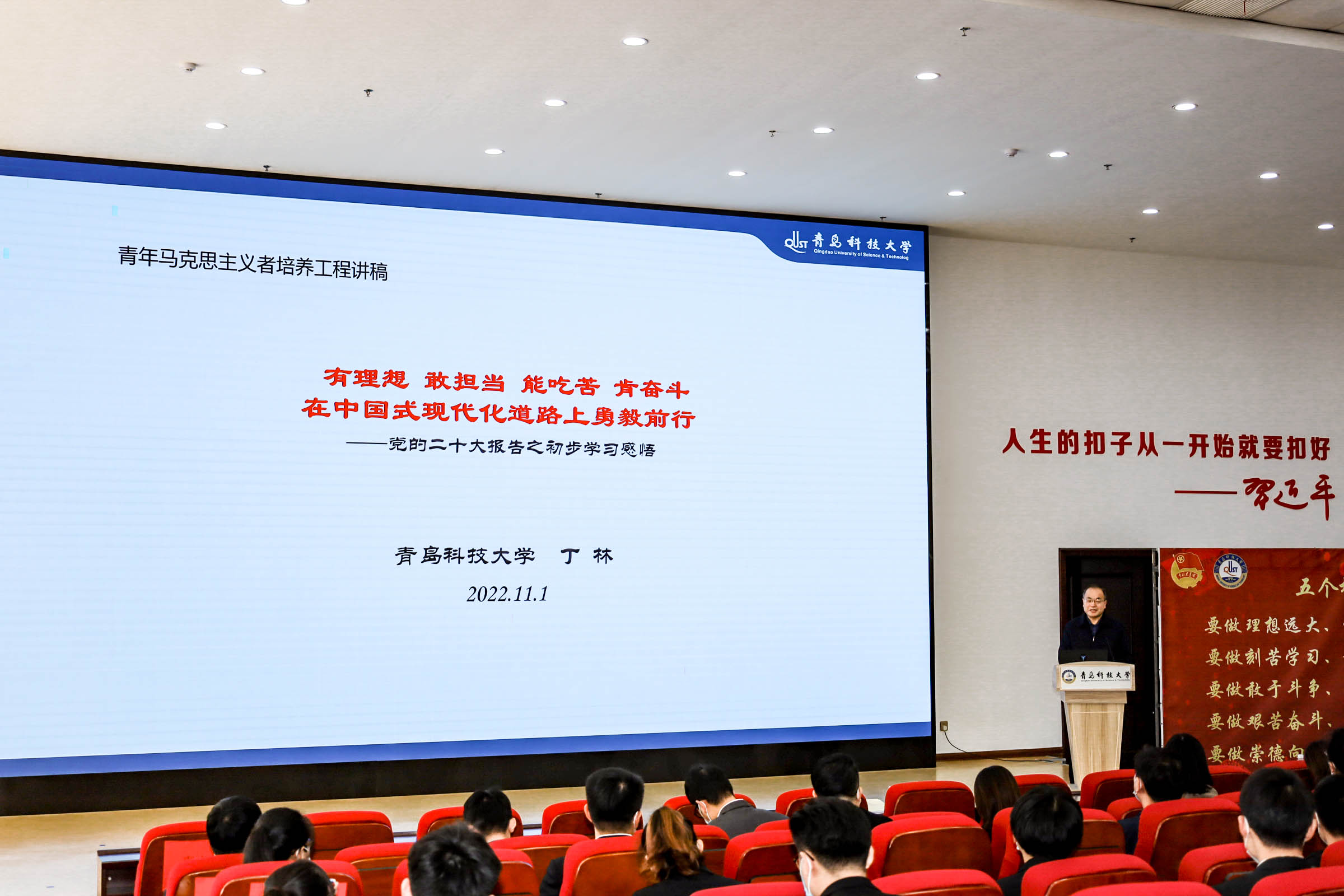 11月1日,学校2022-2023学年“青年马克思主义者培养工程”启动仪式在崂山校区团学报告厅举行,高密校区、中德校区及各院级青马工程学员线上参与。党委常委、副校长丁林,党委常委、宣传部部长张洪坤出席仪式。