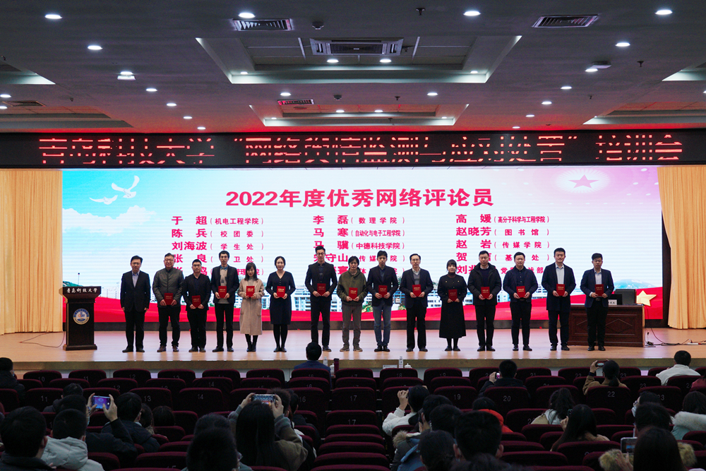 培训会上,张洪坤为学校2022年度优秀网络评论员颁发了荣誉证书。党委宣传部副部长李鲲鹏宣读了表彰文件。