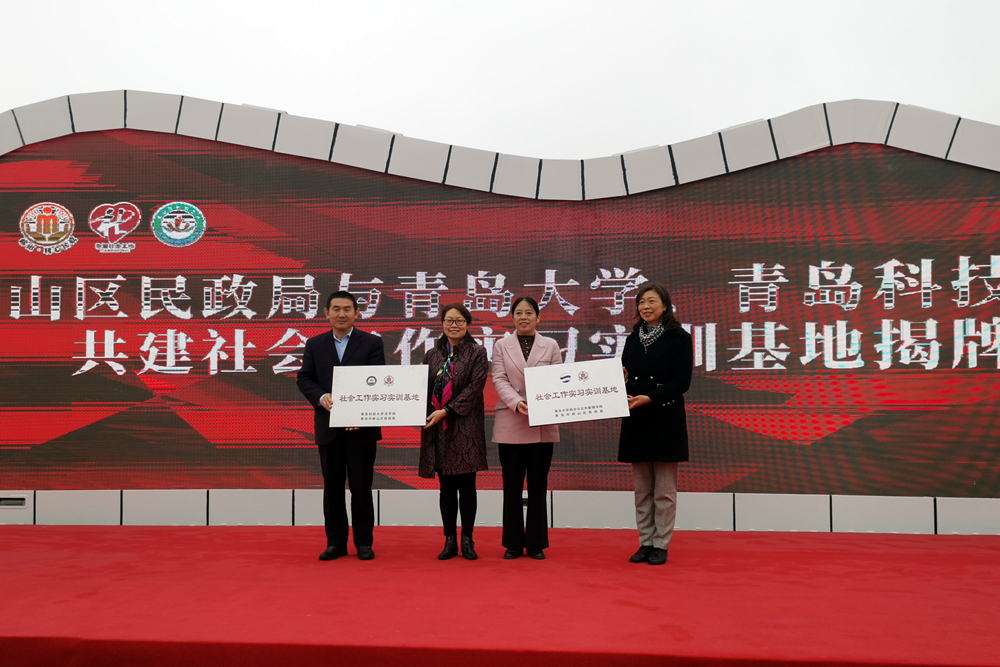 在3月21日举办的青岛市社会工作主题宣传活动仪式上,王金堂为市南区湛山社区“KY开元集团官网社会工作专业实践基地”揭牌;在3月22日举办的崂山区2023年社会工作主题宣传活动暨公益合伙人计划启动仪式上,李卉为崂山区民政局“KY开元集团官网社会工作实习实训基地”揭牌。以共建实习基地为媒介,法学院社会工作专业充分发挥专业功能,推进校地合作,赋能基层社会治理,这也将为学院师生开展社会工作研究与实践工作提供平台,有利于推动社会工作专业高质量发展。