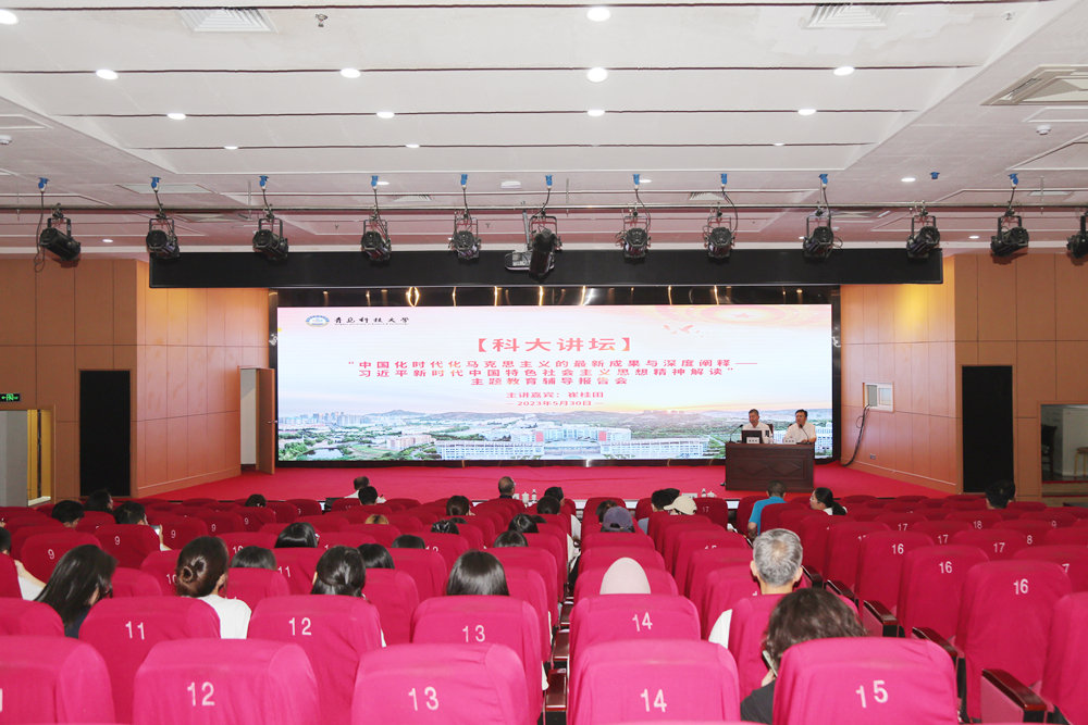 5月30日下午,由党委宣传部、马克思主义学院举办的科大讲坛之“中国化马克思主义的最新成果与深度阐释——习近平新时代中国特色社会主义思想精神解读”主题教育辅导报告会在崂山校区第二报告厅举行。党委常委、副校长丁林参加了报告会。报告会由党委常委、党委宣传部部长张洪坤主持。