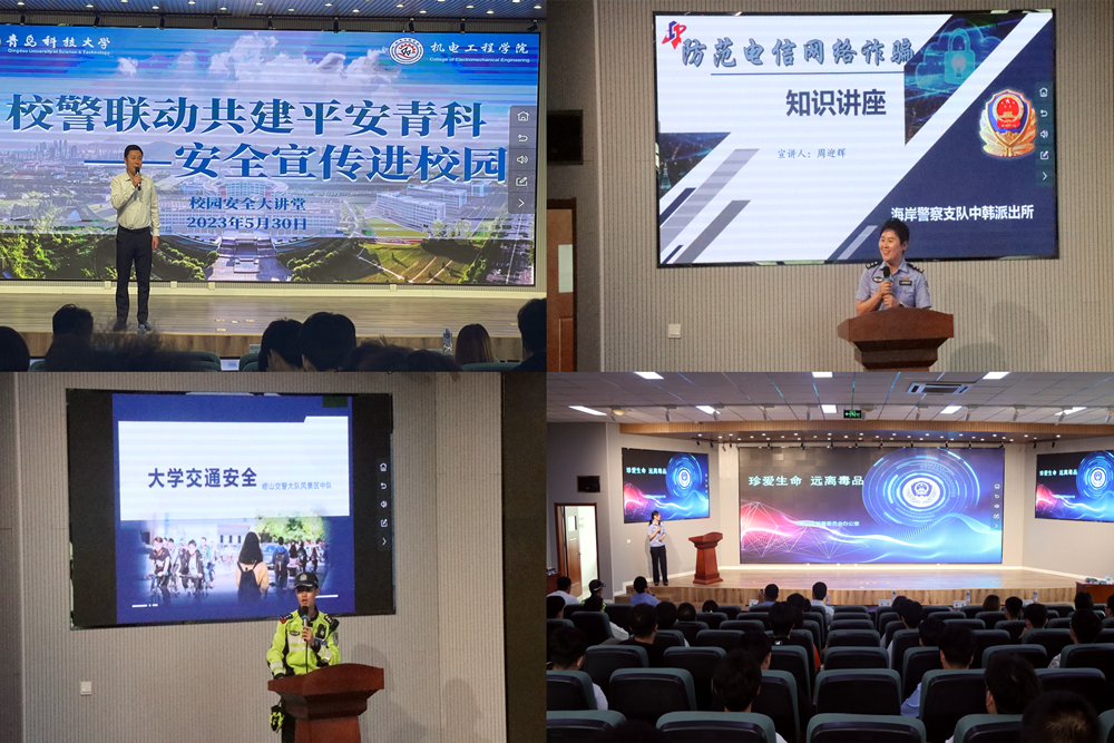 为进一步加强安全教育,增强学生的安全意识,5月30日下午,保卫处联合崂山公安、机电工程学院在学院楼530会议室举行“校警联动共建平安青科”安全宣讲会。崂山区公安干警代表,学校保卫处相关负责人、机电工程学院辅导员代表,学院学生代表140余人参加会议。