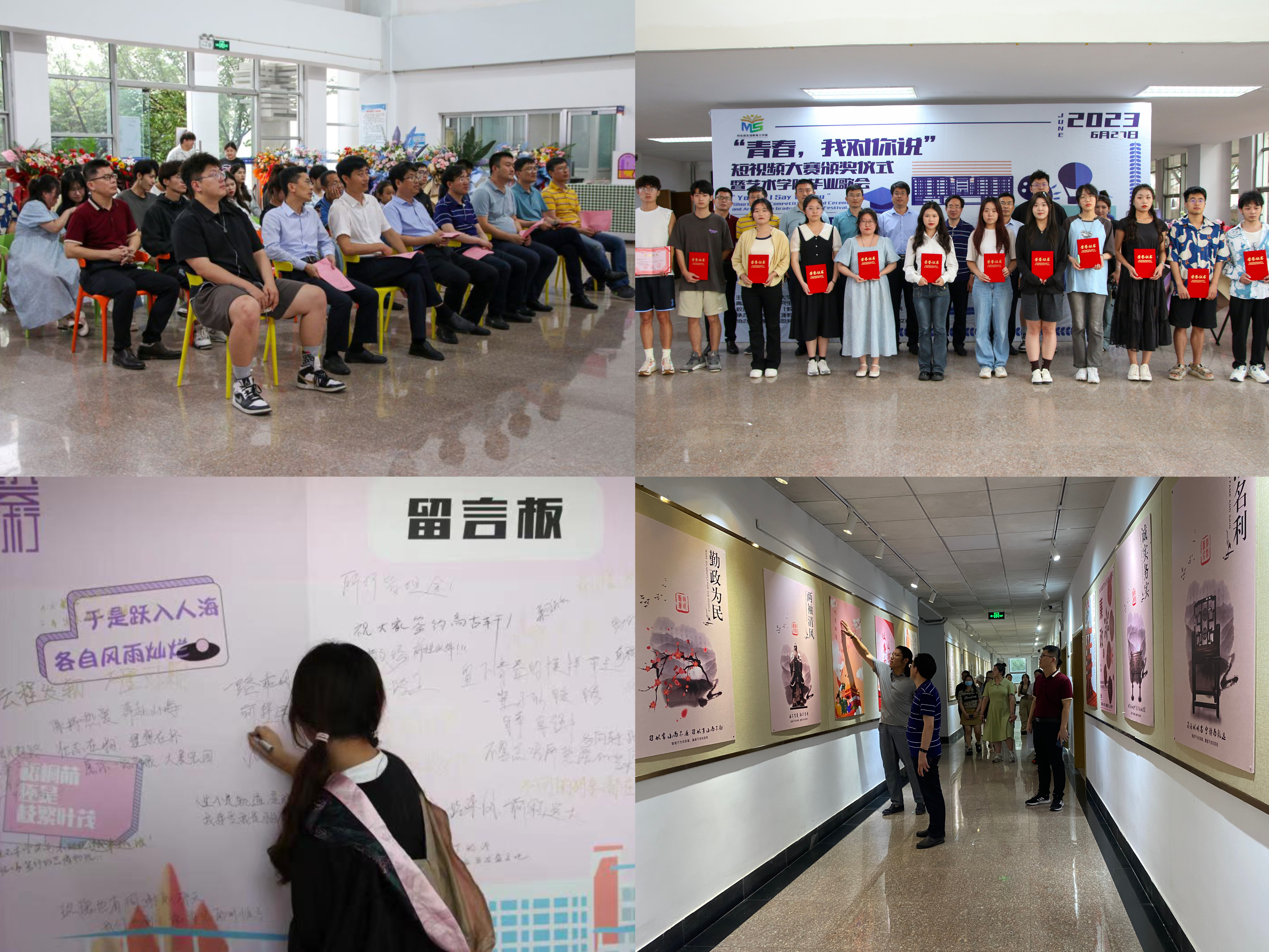 艺术学院团委开展“青春逐梦·行远思恩”毕业季系列活动。举办2023届毕业生代表座谈会,加强师生之间的交流与沟通;举办“青春·我对你说”短视频大赛颁奖仪式暨艺术学院毕业歌会,为毕业生上好最后一堂“艺术思政课”;举办“缤纷毕业季·留言寄真情”毕业留言墙活动,引导毕业生为母校发展献言献策,激发毕业生爱校荣校真挚情怀。