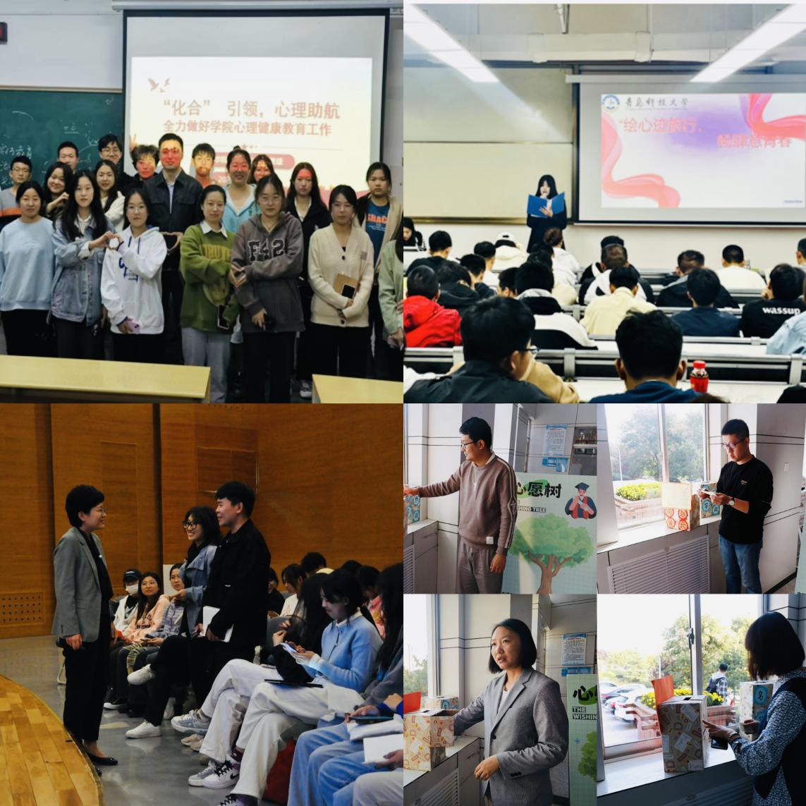 以智慧心。中德科技学院创设师生答疑信箱——“知心树洞”,致力于为每位学生提供最贴心、最专业的解答。化学院开展“‘化合’引领,心理助航”心理委员培训,也深入宿舍参与“寝室座谈,共筑未来”座谈会,师生共话成长,促进助人自助技能的提升。中德校区以“积极适应、未来可期”为主题面向新生举办5场心理宣讲,引导新生以积极的心态迎接崭新的大学生活。艺术学院邀请心理咨询师张玉作人际沟通专题讲座,在三全育人理念下尽显师者关怀。
