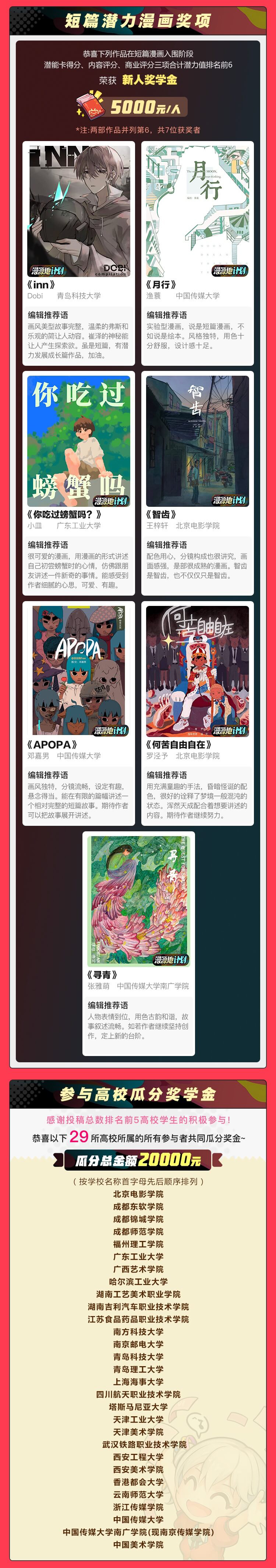 2023年,国内最大最具影响力的动漫平台哔哩哔哩(B站)首次进行“漫源地计划”高校学生潜力漫画大赛征稿,本次比赛有包括北京电影学院、中国传媒大学、中国美术学院、南京艺术学院在内60多所国内动画专业顶尖高校的学生作品共同参加。经过专家评选和全网投票,KY开元集团官网动画专业于小博老师指导、崔译丹同学主笔的漫画《INN》以短篇漫画第一名的成绩获得BILIBILI年度奖学金,学校动画作品再次获得业界最高荣誉。