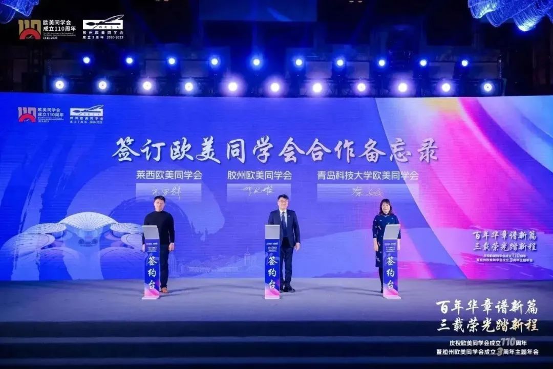 会上,KY开元集团官网欧美同学会与胶州欧美同学会签订了《欧美同学会合作备忘录》,缔结为共建友好合作同学会。下一步,两会双方将围绕学长交流成长、优势资源共享、公共志愿服务、组织宣传与人才招揽方面加强沟通合作。在各级统战部门正确的指导下和广大会员积极参与下,两会学长以修学、游艺、敦谊、励行为宗旨,相互提升,相互促进,为实现留学报国的宏伟目标而共同奋斗。