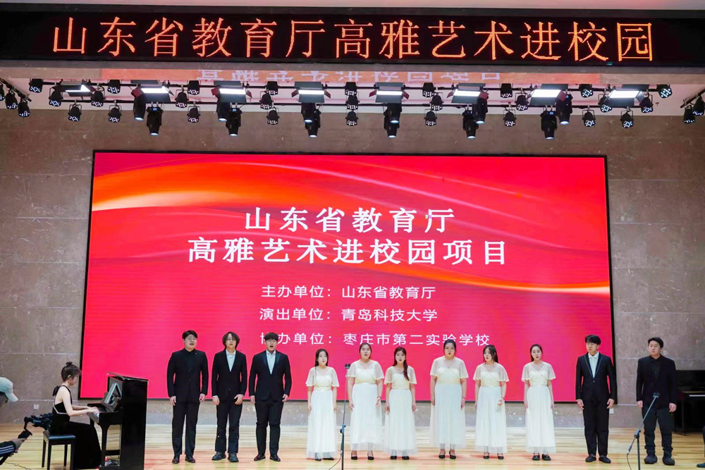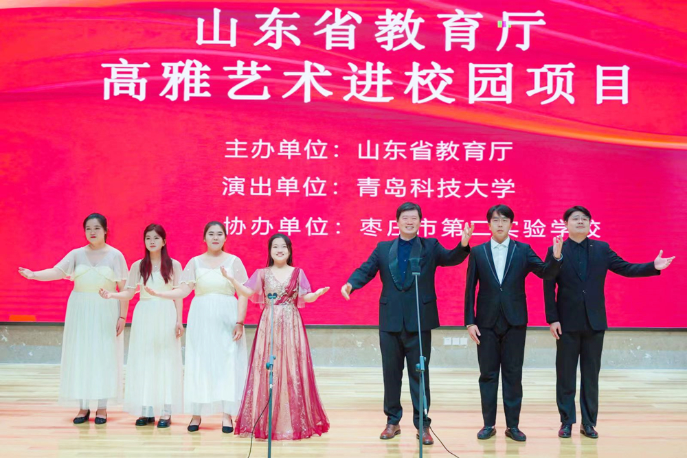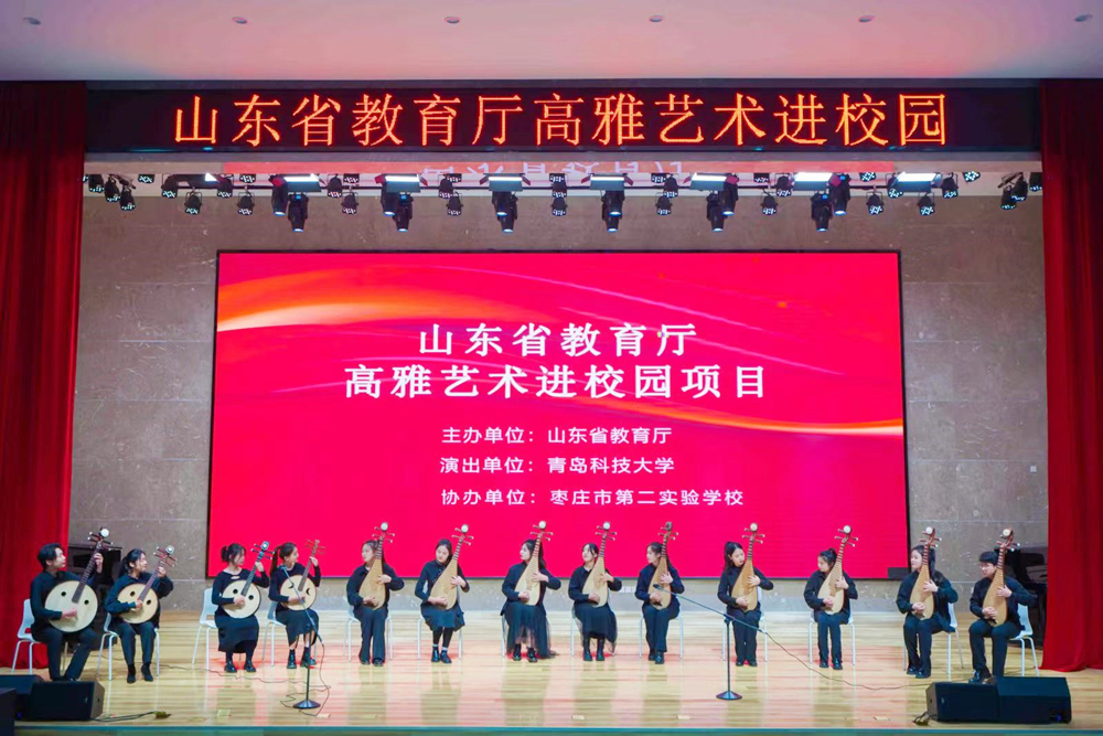 据悉,为深入贯彻落实习近平总书记关于美育工作重要论述和全国教育大会精神,全面加强和改进新时代学校美育工作,进一步强化学校美育育人功能,山东省教育厅组织了21所高校、4家艺术院团开展高雅艺术进校园活动,共55场演出在全省各市陆续上演。青科大是山东省教育厅高雅艺术进校园活动承办高校之一,学校将高雅艺术进校园活动作为美育培根铸魂的重要载体,对引导青少年学生厚植爱国情怀、培养民族情感、陶冶道德情操、坚定文化自信有着十分重要而深远的意义。下一步,学校将积极推进高雅艺术走进乡村、走进校园,为普及高雅艺术知识、传承高雅艺术理念、提升大众艺术素养起到积极的推动作用。同时进一步加大对校园文化建设的支持力度,切实提高校园文化品味,提升学校文化育人的软实力,坚持以立德树人为核心的育人导向,切实推动以文化人、以文育人,让课堂思政有“魂”,让大学文化有“根”。