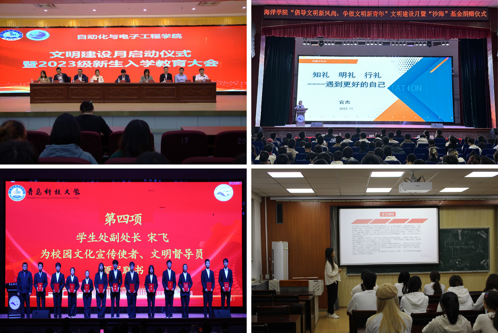 环境学院组织“环保人人有责,共建美丽青科”实践活动,联合其他驻青高校开展军训服公益捐助活动,让数千名一线建筑工人和社会大众受益,引导学子提升社会责任意识。材料学院组织开展“明德端学知荣辱,争做最美材料人”网络文明发声活动,增强学生合理用网意识和辨别是非、抵御网络谣言的能力,设立校园文明志愿者实践站,鼓励学生大力践行“奉献、友爱、互助、进步”的志愿精神。中德工程学院组织开展“学史立志,爱校荣校”主题知识竞赛和“青科印象”摄影大赛,聚焦建校73年来的发展大事记,展现青科大厚重历史底蕴和校园美丽风景,引导学生争做校园“守护者”。