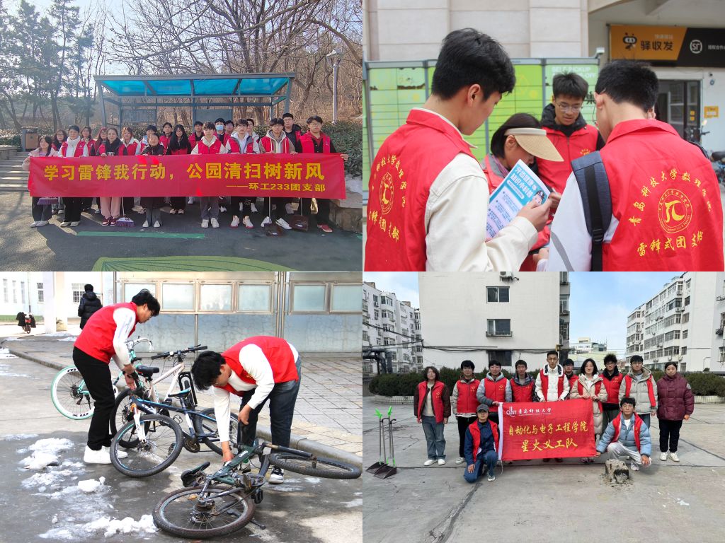 校团委、校学生会、校研究生会开展“学习雷锋精神,践行时代新风”学雷锋活动月主题教育实践活动,制定《学校共青团系统2024年“雷锋月”活动方案》,举行“习近平总书记关于雷锋精神的重要指示精神专题学习会”,组织青年志愿者开展“做雷锋·绎真情”学雷锋日公益演出、“做雷锋·创和谐”社区志愿服务等专项活动,推动学习雷锋精神入脑入心。外语学院团委采用线下会议和网络直播的方式开展“传承雷锋精神,绽放时代光芒”主题团日活动,高密校区团委开展“三月春风暖人心·雷锋精神伴我行”主题升旗仪式,有组织地学习领会习近平总书记对弘扬雷锋精神作出的一系列重要论述,深刻理解雷锋精神的永恒价值和时代内涵。经管学院团委通过“1个中心+4个着力点+N个系列志愿活动”的方式,组织“传承雷锋精神,追寻时代梦想”读书分享会、图书捐赠活动。中德工程学院团委组织青年学生集体观看了《雷锋的笑容》纪录片,80余名青年志愿者在校内开展图书馆书籍整理、校园美化清洁活动。法学院团委以团支部为单位举办学雷锋主题团日活动,组织全体青年学生观看雷锋事迹纪录片、学习雷锋日记。化学院团委开展“学习雷锋精神,践行时代新风”学雷锋系列活动,组织开展“‘化’韵书乡里·雷锋魂火传”学雷锋征文活动、“‘锋’华正茂恰少年”雷锋精神主题宣讲等活动,引领广大青年学子在新征程上深化拓展学雷锋活动,以“青言青语”讲述雷锋故事、刻画雷锋形象,将雷锋精神融入对青年学生的思想引领和价值塑造中。环境学院团委围绕“学” “思” “行”三方面组织主题读书会、“继承雷锋精神,传承青春使命”征文活动、“学习雷锋我行动,公园清扫树新风”志愿服务活动,深入对接社区和北岭山公园进行环境卫生清理。机电工程学院团委启动“讲台清道夫”专项行动,引导广大青年学生从我做起、从身边小事做起,以“做一颗永不生锈的螺丝钉”的责任担当成长为新时代追‘锋’青年。信息学院团委组织青年志愿者对崂山校区北区8号楼学生公寓和图灵学舍进行全方位的安全检查、卫生清洁,数据科学学院团委组织青年志愿者打扫宿舍公共区域,帮助返校同学搬抬行李,齐心协力为师生返校开学开辟出一条条“便捷通道”,材料学院团委全体团支部开展“弘扬雷锋精神,争做时代新人”主题团日活动,以实际行动共建美丽校园,营造舒适校园环境,巩固新时代爱国卫生运动成果。