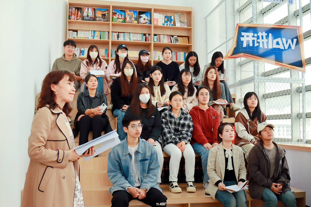 仪式后,青岛作家协会会员、学校图书馆教师赵晓芳做客“开讲LAW”,以《紫丁香花开的四月》为题,与学生们分享新诗发展史及个人代表作《一瓣微笑》诗集的创作历程,并与现场学生共同诵读《希冀》《十一月的小雏菊》等作品,感受诗歌魅力,陶冶文学情操。