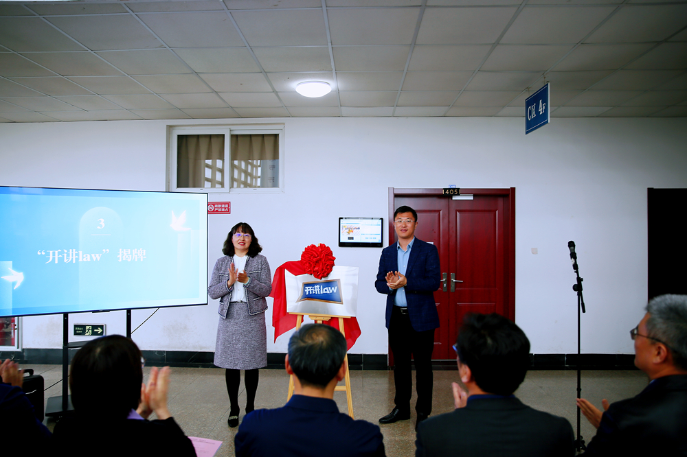 学生工作处处长王丽、团委书记刘跃宁共同为法学院师生全环境立德树人和思政教育融合创新平台“开讲LAW”揭牌。学校图书馆党总支书记王士卿与山东教育出版社总编辑田晓玉共同为山东出版集团KY开元集团官网微型图书馆揭牌。山东出版集团旗下山东教育出版社、山东美术出版社分别向校图书馆捐赠图书,法学院党委副书记王祥梅颁发捐赠证书。