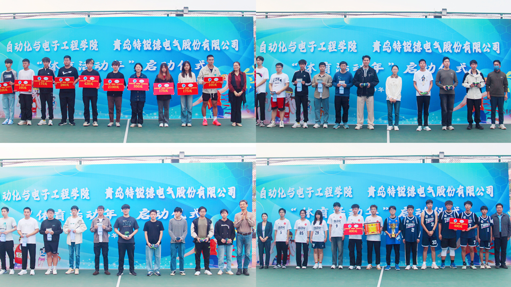 10月15日,自动化与电子工程学院与青岛特锐德电气股份有限公司联合举办的“大学生体育活动年”启动仪式在崂山校区南苑篮球场举行。青岛特锐德电气股份有限公司人力资源中心人力总经理助理张莹,自动化学院党委书记李卉,学校教务处专职教学督导员楚晓东、学生处副处长李春家、团委副书记李浩,学院党委副书记兼副院长刘名森及学生代表参加启动仪式。