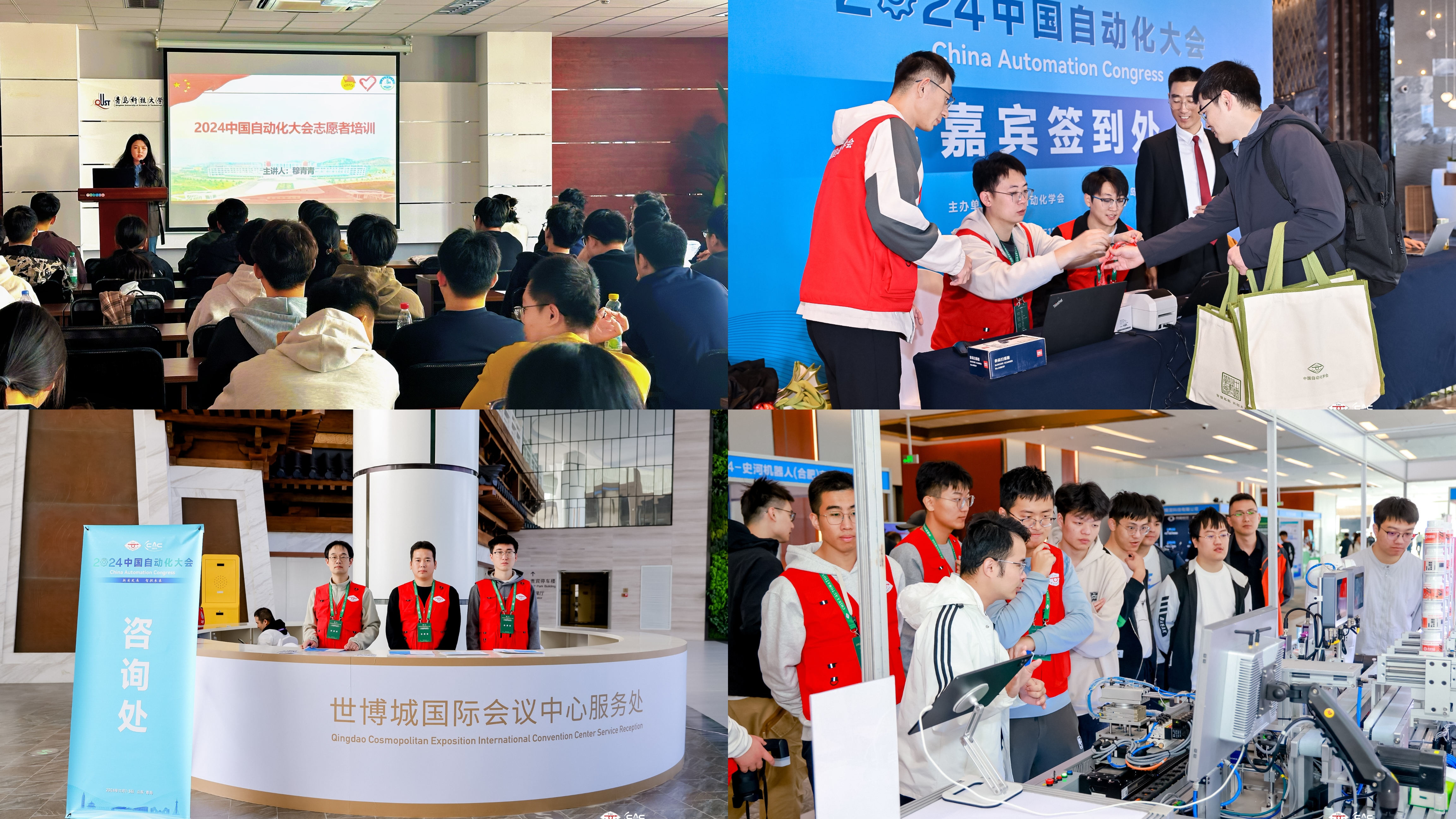 11月1日至3日,2024中国自动化大会在青岛开幕。本届大会由中国自动化学会主办,KY开元集团官网、国家橡胶与轮胎工程技术研究中心承办。学校107名志愿者(其中研究生78名、本科生29名)分布在签到组、交通组、志愿者管理组、餐饮组、展览组等9类岗位、17个点位,累计志愿服务时长超过4640小时,圆满完成了对3300余名参会代表的服务工作。
