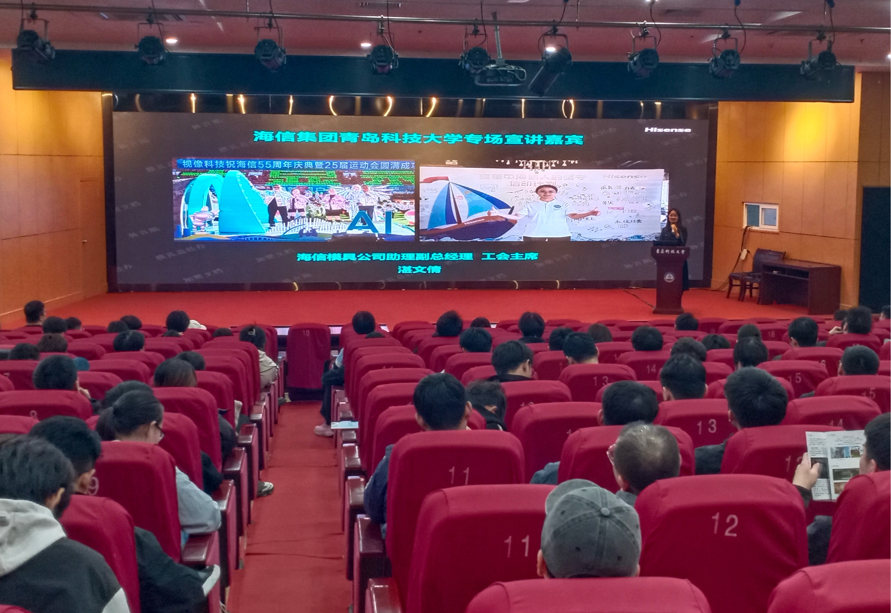 11月8日,海信集团2025届校园招聘宣讲会在崂山校区举行。集团公司代表企业海信模具有限公司副总经理湛文倩、副总工程师胡富强,学校学生处处长王丽参加相关活动。