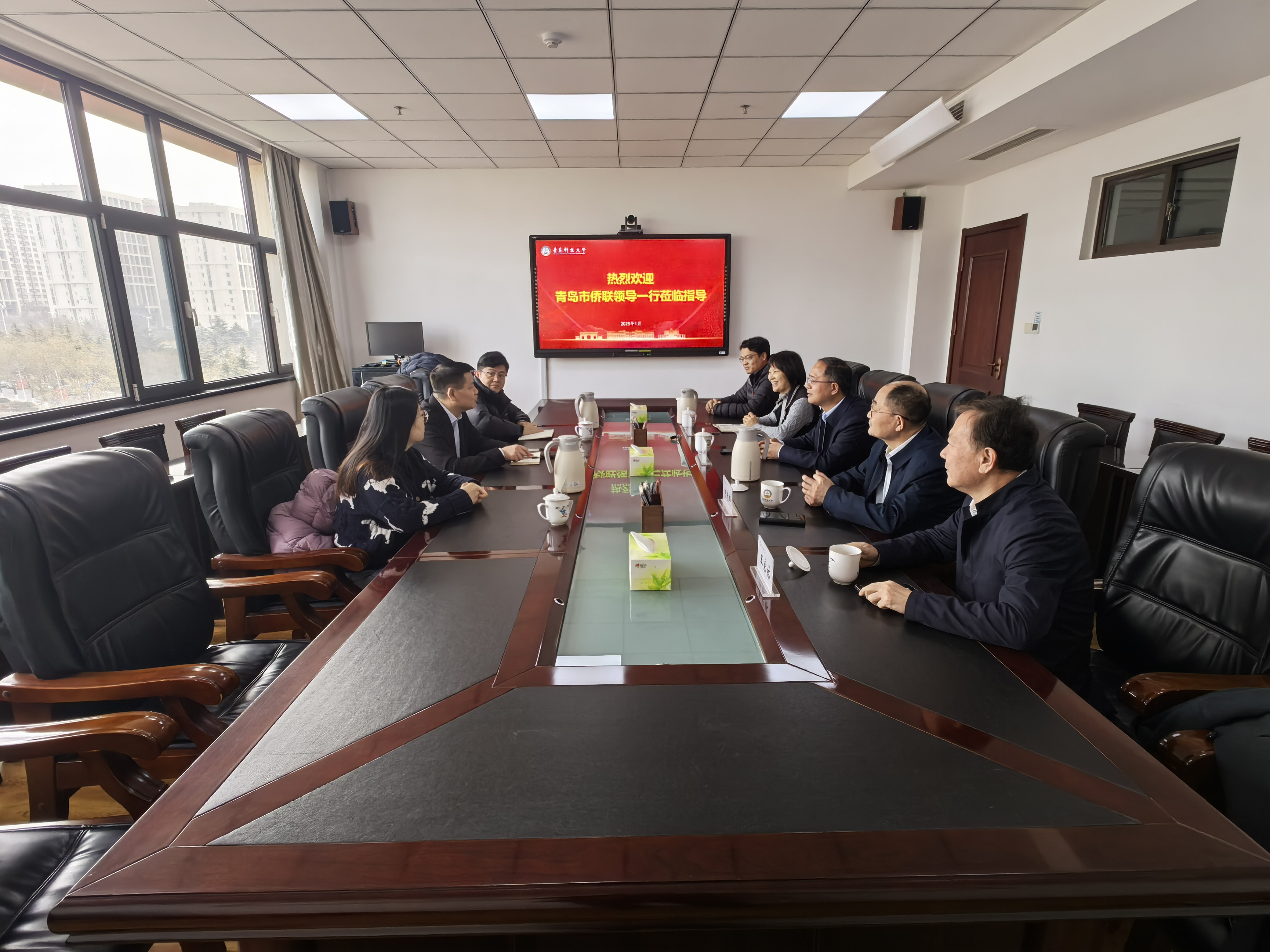 1月9日,青岛市侨联主席牛旭东一行到校走访慰问刘光烨、王家林、李猛等侨界代表人士。党委常委、副校长罗细亮,党委常委、统战部部长秦姣参加活动。
