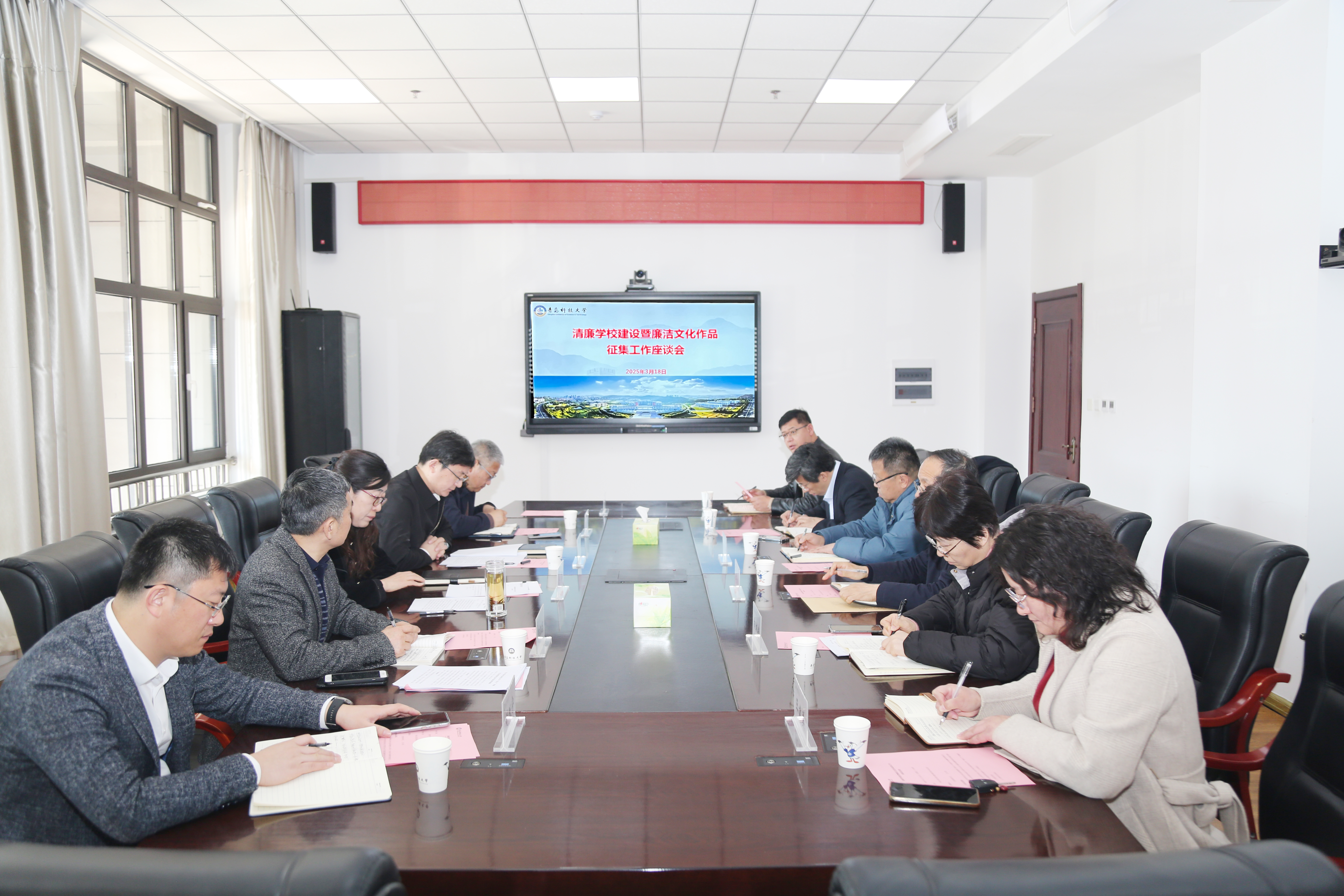 3月18日,学校清廉学校建设暨廉洁文化作品征集工作座谈会在崂山校区综合服务楼2015会议室召开。学校党委常委、纪委书记、监察专员李萍出席会议并讲话。纪委副书记王江忠主持会议。