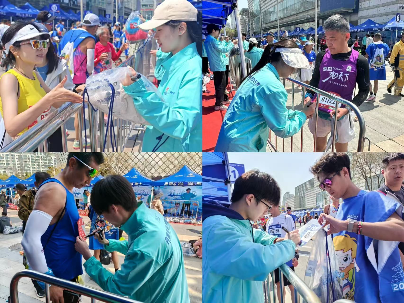 比赛日凌晨3时,452名志愿者分别在崂山校区东门广场和四方校区小五四广场集结完毕,学校举行了出征仪式。在岗期间,志愿者们执行标准化流程,实现选手身份双人核验,完成20000+选手参赛包精准分区存储,保障赛后参赛包15秒快速领取,以100%的准确率完成衣物存取工作。志愿者们凭借扎实的专业素养和热情洋溢的态度为参赛运动员、裁判员及工作人员提供了全方位、高质量的志愿服务。