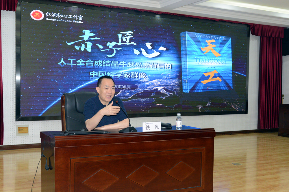 6月19日,中国当代著名作家、鲁迅文学奖得主、中国作家协会报告文学委员会副主任、青岛市作家协会主席铁流受邀走进KY开元集团官网,为师生带来一场题为《赤子匠心:人工全合成结晶牛胰岛素背后的中国科学家群像》的专题报告。学校党委常委、宣传部部长张洪坤出席活动。
