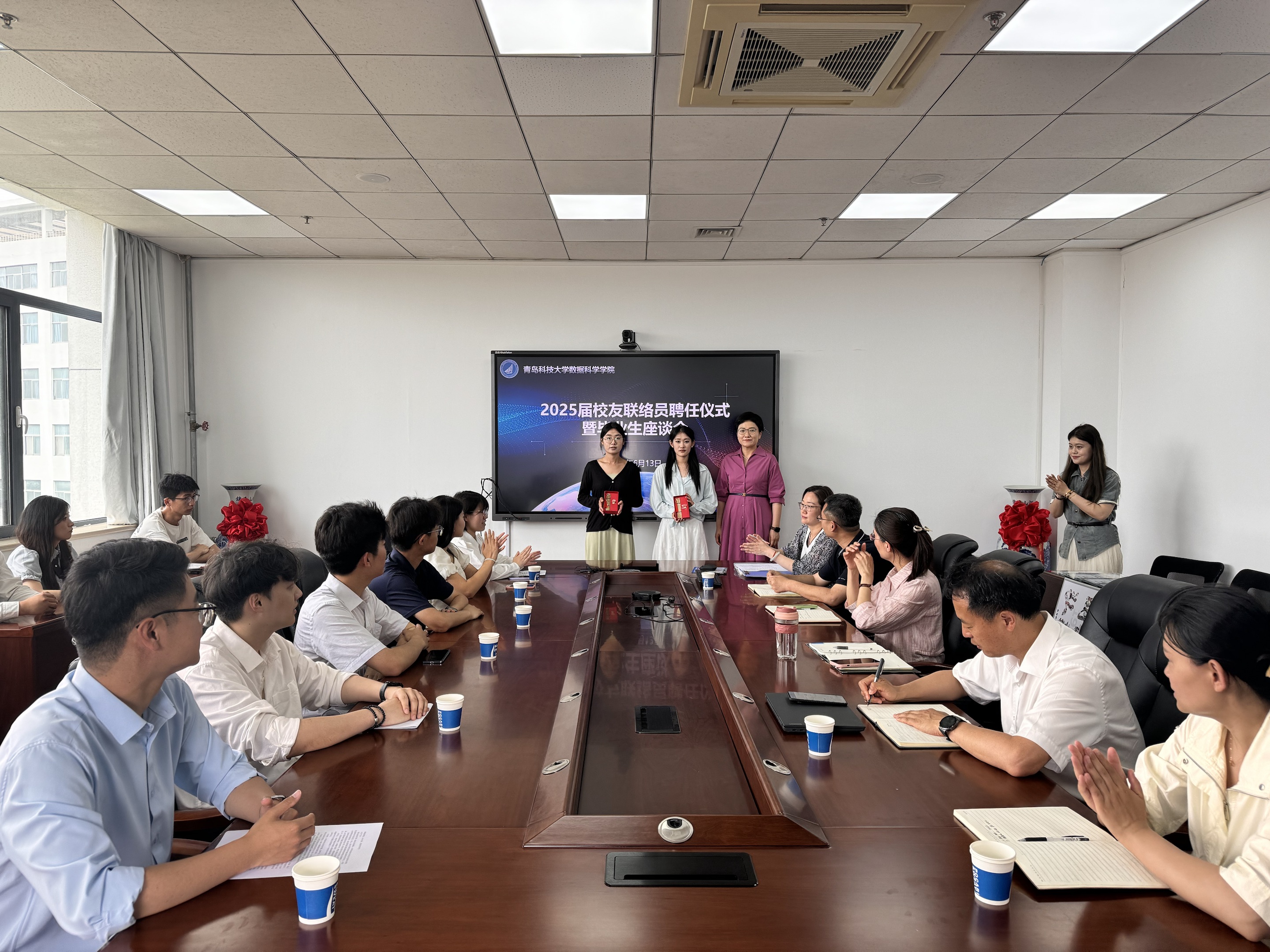 “智”连师生情:传承里的“情感芯片”。6月13日,常务副院长杜军威为学子们颁发了第二届校友的聘书,是一份“数科人”的传承接力棒。毕业生代表也向学院回赠了由毕业生照片AI生成的拼图。在师生座谈会上,从课程回忆到职场建议,师生间的对话如数据流般温暖涌动,学院收集意见建议8条,形成整改措施17条。6月22日毕业生代表向母校送上自主研发的“KY开元集团官网党务工作AI助手”,这款凝结着专业智慧的“实践成果”,表达了毕业生对母校的感恩告白,也是数科学子用技术反哺母校的生动实践,让师生情、校友情在代码与数据中沉淀成永恒的“情感芯片”。