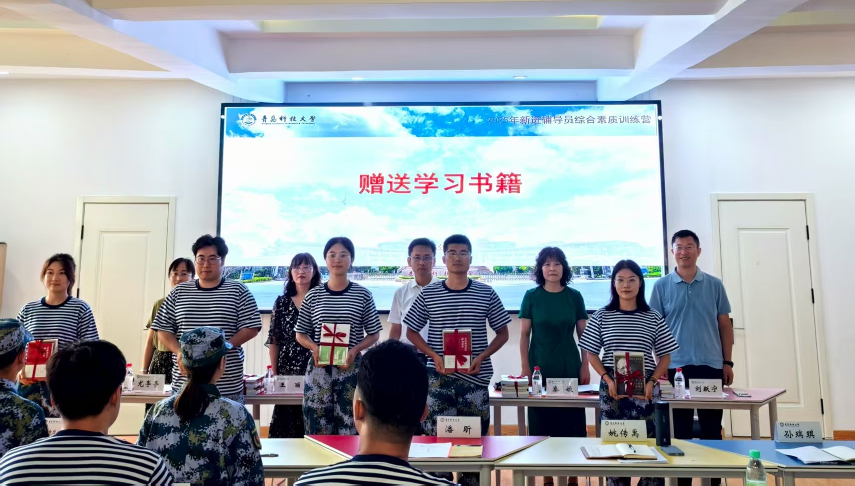 开营式上,与会领导为新进辅导员赠送了学习书籍。14名新进辅导员对照“高校辅导员誓词”进行了入职宣誓。
