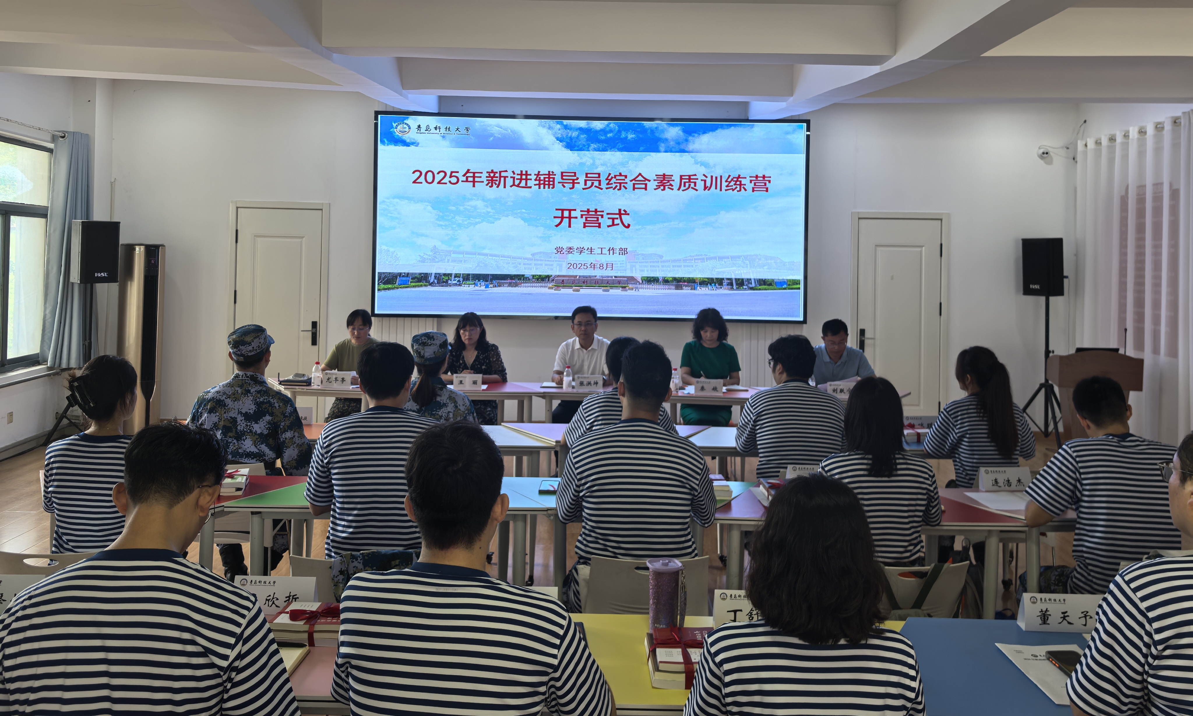 8月18日,学校2025年新进辅导员综合素质训练营在崂山校区开营。党委常委、宣传部部长张洪坤,党委常委、统战部部长秦姣出席开营式。
