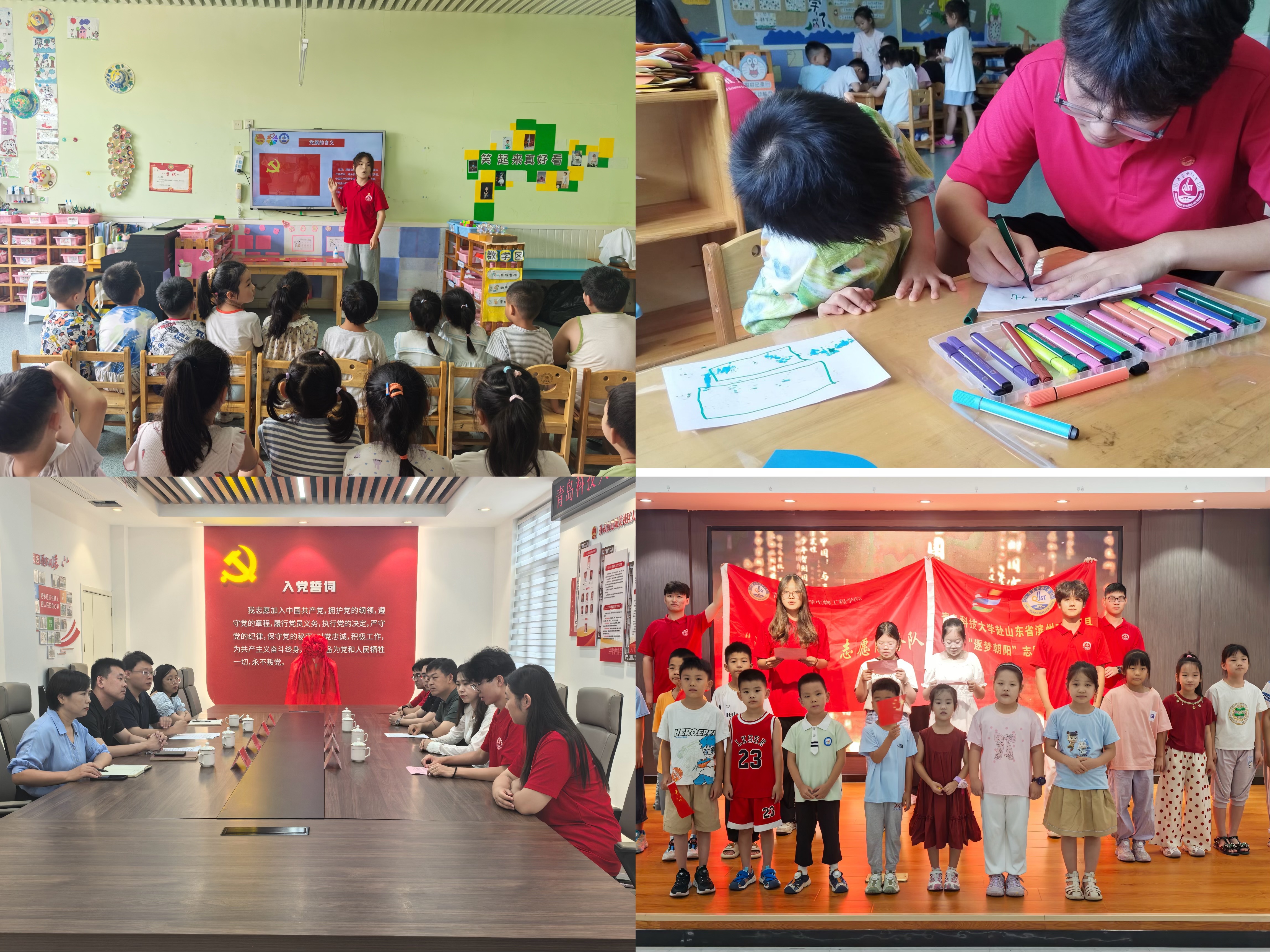 “泉海同行”爱心志愿服务团赴济南市章丘区山水南城梧桐树幼儿园围绕红色文化传承、本土文化扎根、海洋科普启蒙、儿童安全守护四大专题,设计实施互动性强、寓教于乐的课程与活动。“逐梦朝阳”志愿服务队赴滨州市惠民县开展“滨滨学堂”对接与服务,在服务奉献中传递知识与关爱,播撒科学种子,守护童心安全,促进儿童全面发展,同时深化志愿者自身的社会责任感与教育情怀。