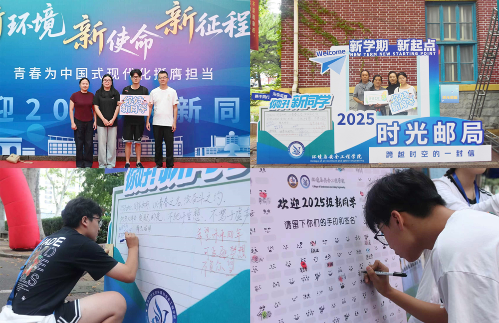 精“新”布置,特色展示亮点纷呈。学院精心布置报到点,结合纪念中国人民抗日战争暨世界反法西斯战争胜利80周年主题,融合思政元素,设置了“新环境 新使命 新征程 青春为中国式现代化挺膺担当”主题喷绘,手举标语KT板,现场新生和家长们纷纷在迎新展板前拍照打卡,定格和青科大环境学院的第一张合影。“签名印章墙”前新生郑重签上姓名、按下手印,留下与环境学院的第一个约定。打造“时光邮局”开展跨越时空对话,引导新生写下对革命先辈的崇敬之情和自己未来的励志理想。