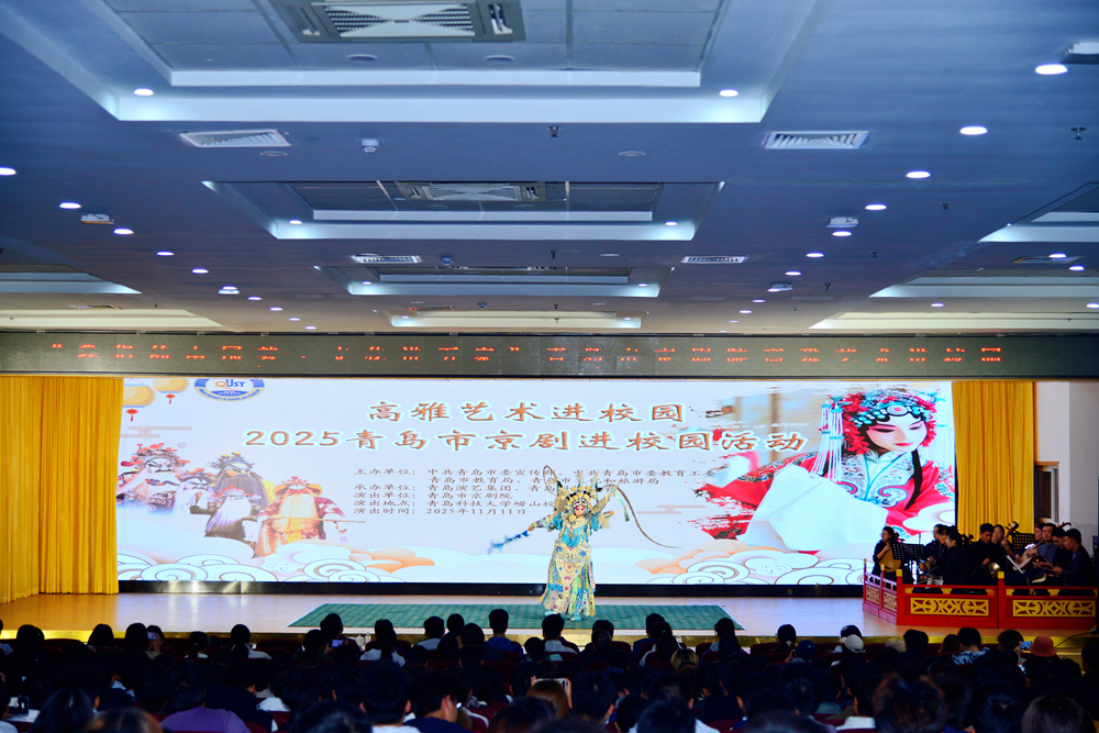11月11日下午,“高雅艺术进校园”2025青岛市京剧进校园活动在崂山校区举行。青岛演艺集团主要负责人张伟,青岛市京剧院院长张欣,学校党委常委、宣传部部长张洪坤出席活动。