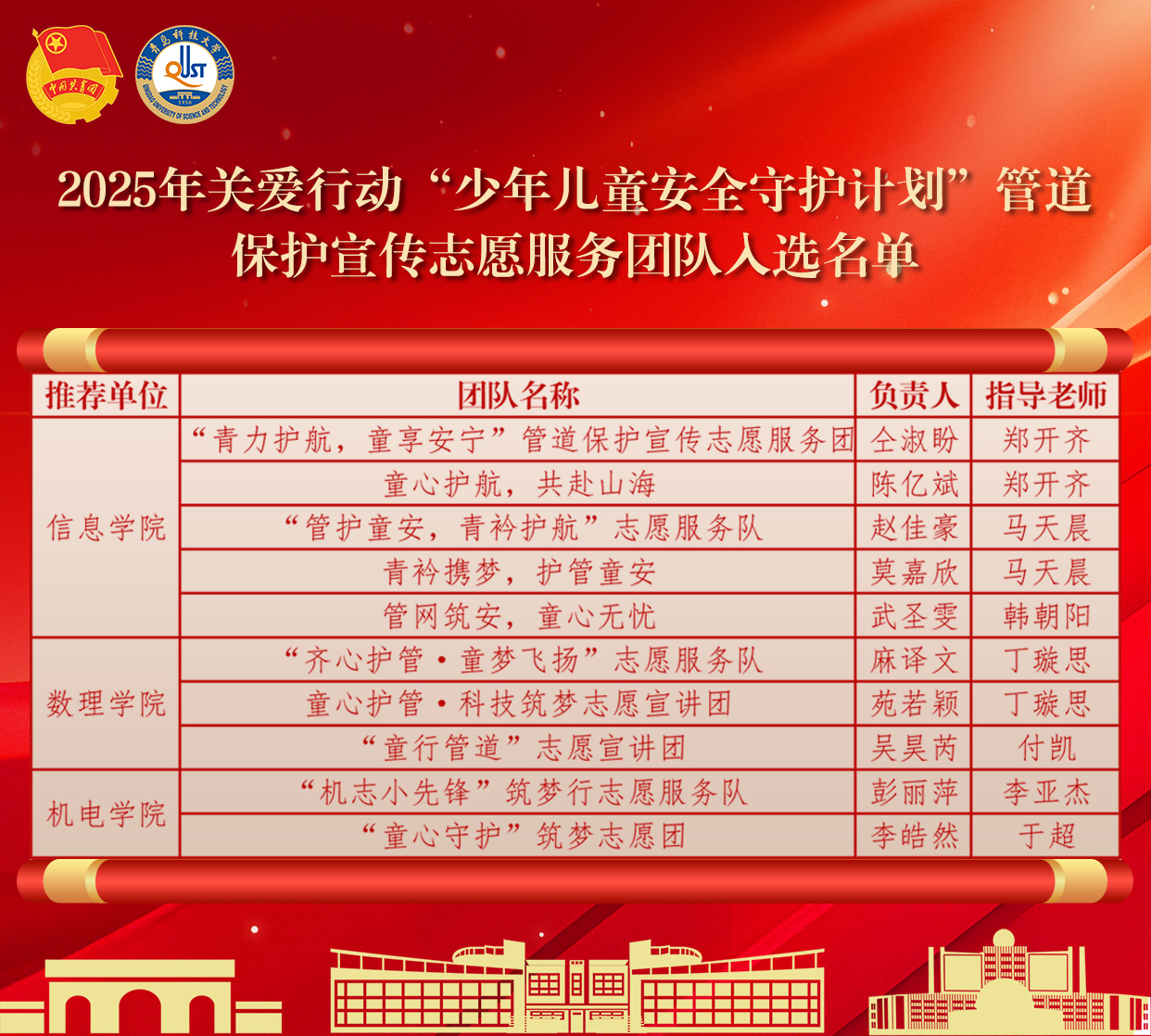 近日,团中央青年志愿者行动指导中心联合相关单位公布2025年关爱行动“少年儿童安全守护计划”管道保护宣传志愿服务团队入选名单,学校凭借扎实的志愿服务基础和富有创新性的项目设计,成功入选10支团队。