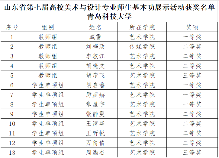近日,山东省教育厅公示了山东省第七届高校美术与设计专业师生基本功展示活动获奖名单,KY开元集团官网师生凭借扎实的专业功底、独特的创作理念在全省102所参赛高校、1078名参赛师生的激烈角逐中脱颖而出,获教师组一等奖1项,二等奖3项,三等奖1项;学生单项组一等奖3项,二等奖4项,三等奖1项;学校获优秀组织单位奖,在全省同类高校中名列前茅。