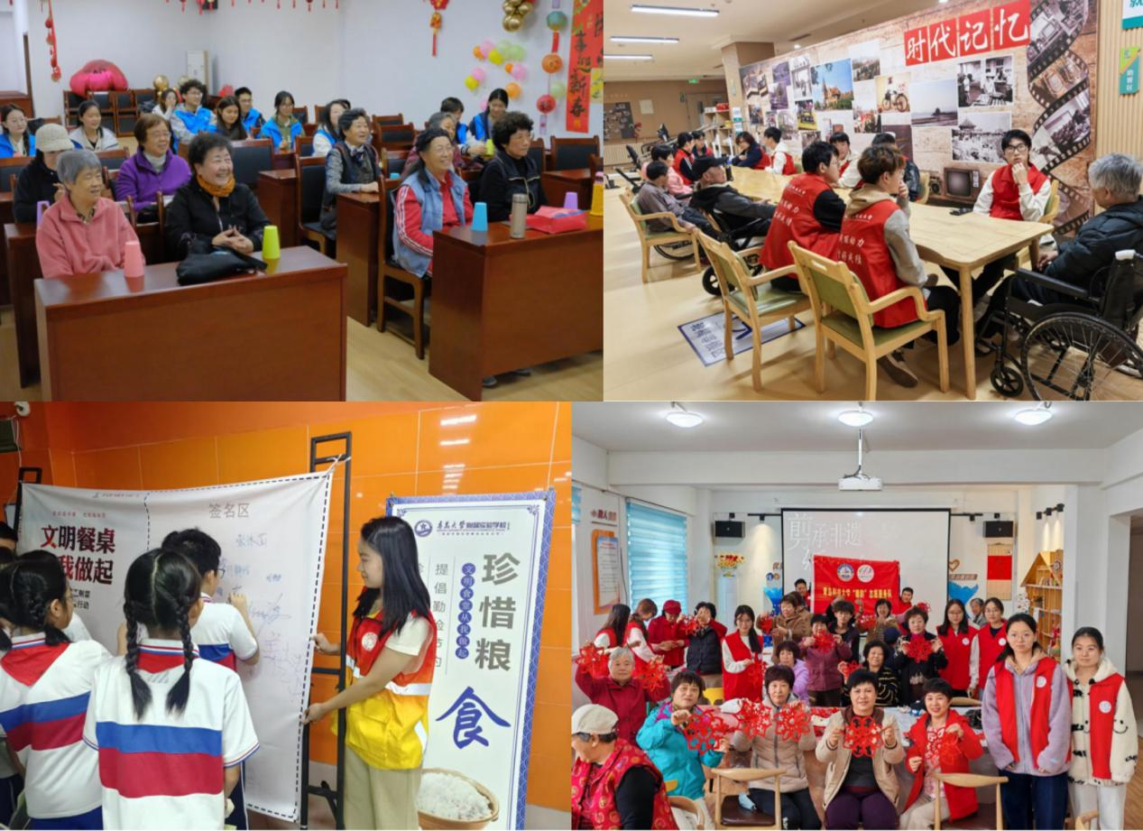 在暖心助老服务领域,各学院聚焦老年群体需求,传递温情与关怀。材料学院依托“趣味科普角”品牌在汇康源老年护理院常态化开展“陪伴夕阳”行动,通过为老人陪护、整理内务及节日特色活动缓解老人孤独感;中德工程学院针“青年实干家”团队对高龄、独居老人推出“智慧助老+温情陪伴”服务,破解数字鸿沟与情感孤独难题;数理学院“雷锋式”团支部则通过“备餐-送餐-陪餐”全流程服务,守护特殊困难老人“舌尖温暖”;高密校区依托“志愿特教中心”特色品牌与西关德邻社区养老服务中心联动,以生日仪式、趣味游戏等实现老少精神同频共振。