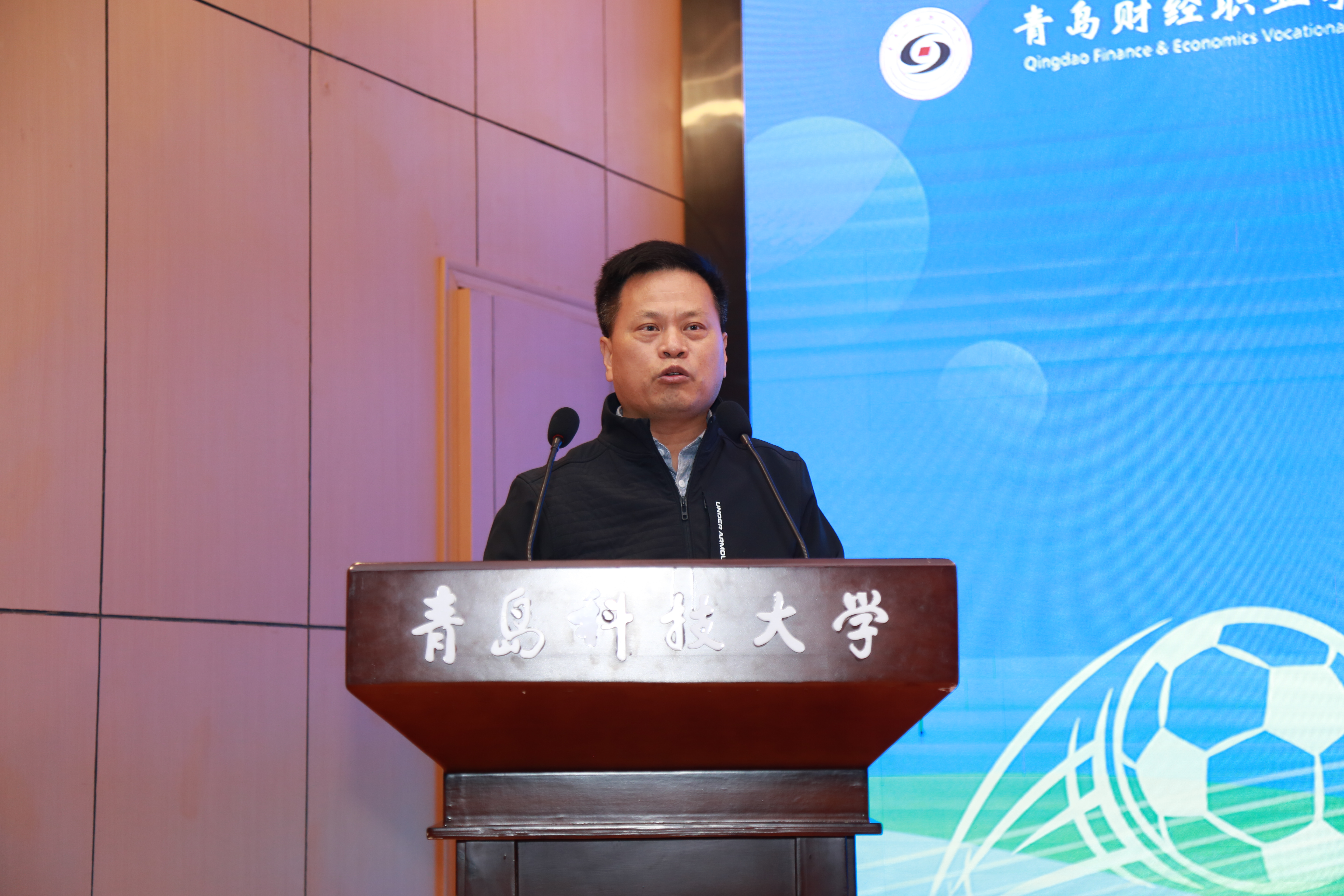 近日,由青岛市教育局、青岛校园足球协会、青岛高校体协指导,青岛财经职业学校(青岛市新型足球学校)、KY开元集团官网体育学院主办的新型足球学校高质量发展研讨会在崂山校区第三报告厅召开。青岛市教育局体卫艺处二级调研员王泗卷,青岛校园足球协会会长管泽毅,青岛财经职业学校副校长(主持工作)刘杰,KY开元集团官网体育学院党委书记杨中华及企业、师生代表近百人参加了本次研讨会。会议由体育学院院长张霄主持。