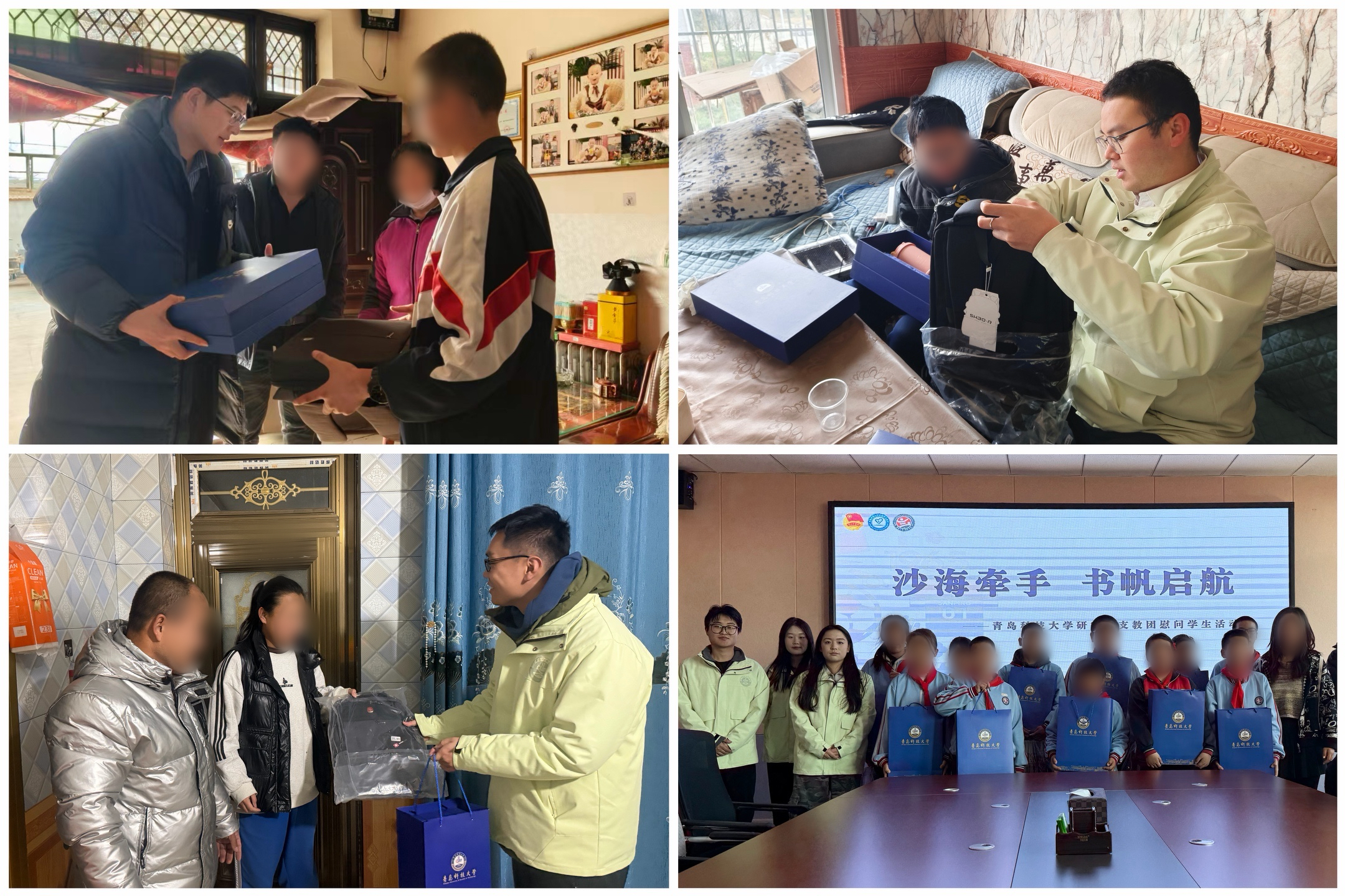 本次走访活动覆盖新疆生产建设兵团第十二师,宁夏回族自治区银川市兴庆区、固原市彭阳县,贵州省安顺市镇宁布依族苗族自治县四地,共计走访100名家庭经济困难学生。走访过程中,支教团成员精心准备了书包、文具等学习用品,将来自青科大的温暖与关怀亲手送到学生及家长手中。每到一户,成员们都与家长和学生深入交谈,详细了解家庭状况、学习困难等方面的情况,给予孩子们精神上的鼓励与陪伴。