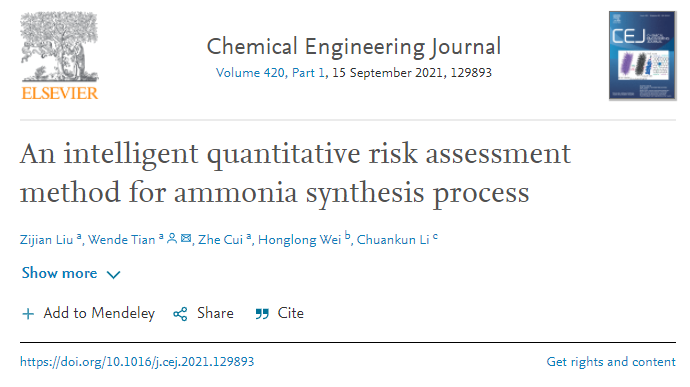 近日,化工学院田文德教授团队利用深度学习、定量风险评估、贝叶斯网络等方法在化工工况风险预测、故障诊断等方面取得突破,并在国际知名学术期刊Chemical Engineering Journal(一区TOP,IF=13.273)上发表了两篇题目分别为“An intelligent quantitative risk assessment method for ammonia synthesis process”和“Optimized principal component analysis and multi-state Bayesian network integrated method for chemical process monitoring and variable state prediction”的文章。