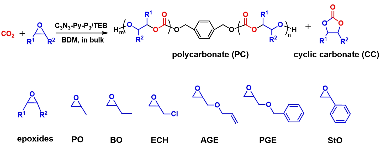 二氧化碳(CO2)资源丰富、无毒且低成本,是最具吸引力的C1可再生资源之一。CO2和环氧化物共聚不仅减少了人们对石化原料的依赖,更重要的是,共聚产物CO2基聚碳酸酯(CO2-PCs)材料具有可降解性。因此,以CO2为原料制备高分子材料不仅实现了CO2的合理转化,还有效地解决了绿色可持续发展的两大挑战:温室效应和白色污染。
