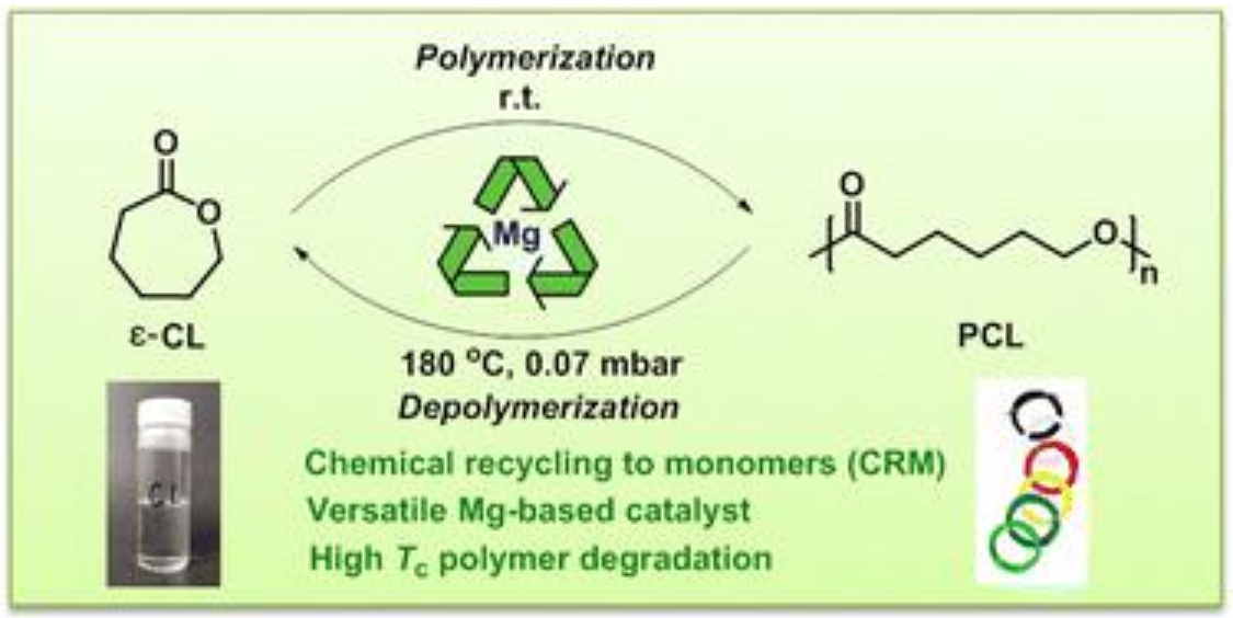 成果三:以“Closed-loop chemical recycling of poly(ε-caprolactone) by tuning reaction parameters”为题目,发表在Polymer Chemistry期刊。该研究首次报道了以双(双三甲基硅基)胺镁[Mg(HMDS)2]作为催化剂,实现“ε-CL到PCL再到ε-CL”的聚合单体闭环循环和“PCL到ε-CL再到PCL”的聚合物闭环循环过程(如图3所示),建立了商业医用材料PCL的循环生命周期。高分子学院硕士研究生苏家丰为论文的第一作者,孙洪广为第一通讯作者,KY开元集团官网为第一通讯单位。