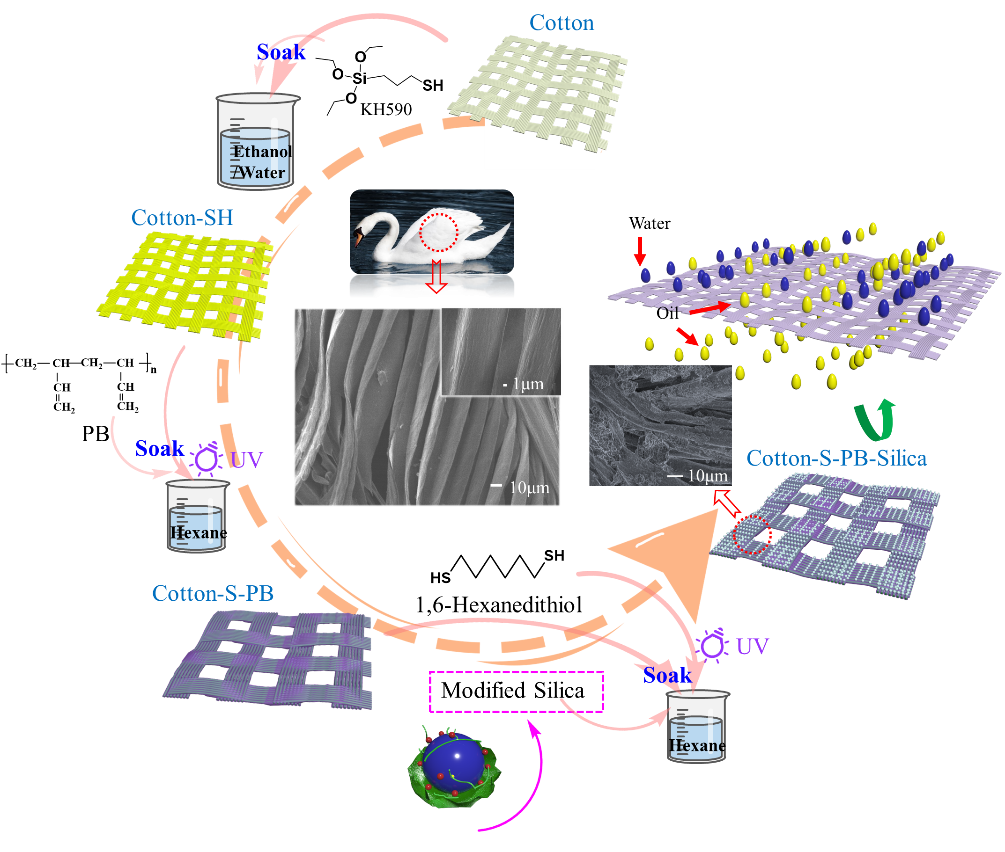 更多信息请参见Progress in Organic Coatings(中科院一区TOP)期刊上“Swan feather-spired fluorine-free superhydrophobic self-cleaning cotton cloth with strong oil-water separation function”为题发表的论文(https://doi.org/10.1016/j.coco.2023.101566)。第一作者为KY开元集团官网高分子科学与工程学院博士研究生刘玉冬,通讯作者为华静教授。此研究工作得到了山东省自然科学基金的支持。